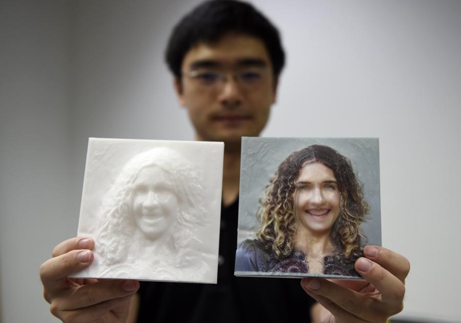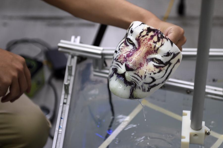 A three-dimensional coloring technology is invented by a research team of Zhejiang University. This technology can solve the problem of coloring three-dimensional objects. (Photo/Xinhua)