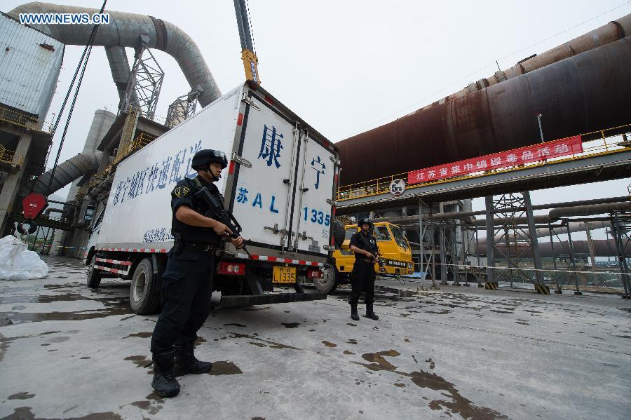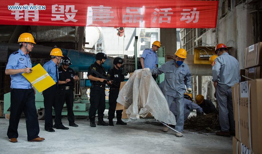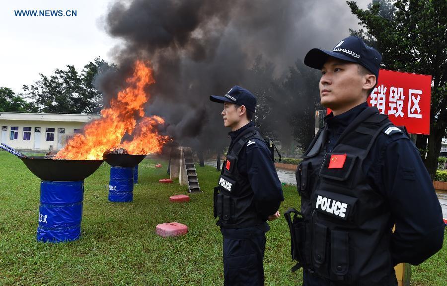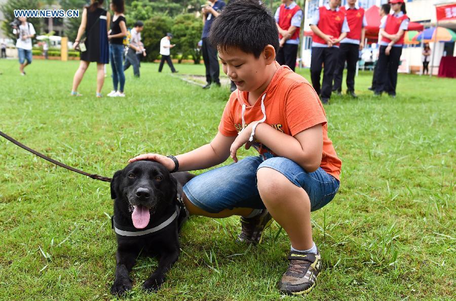 A boy plays with a sniffer dog during an anti-drug activity ahead of the International Day Against Drug Abuse and Illicit Trafficking at Yantian Sniffer Dogs Base in Shenzhen, south China's Guangdong Province, June 24, 2015. (Photo: Xinhua/Mao Siqian)