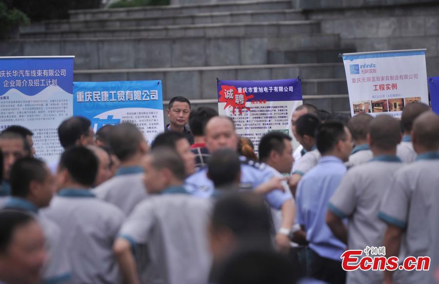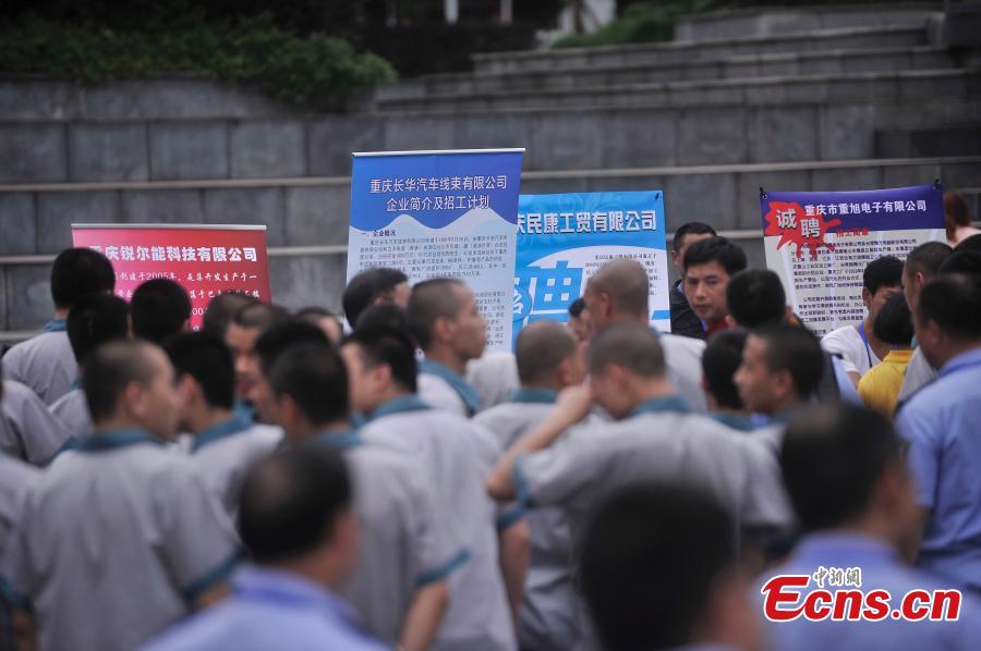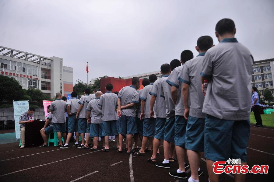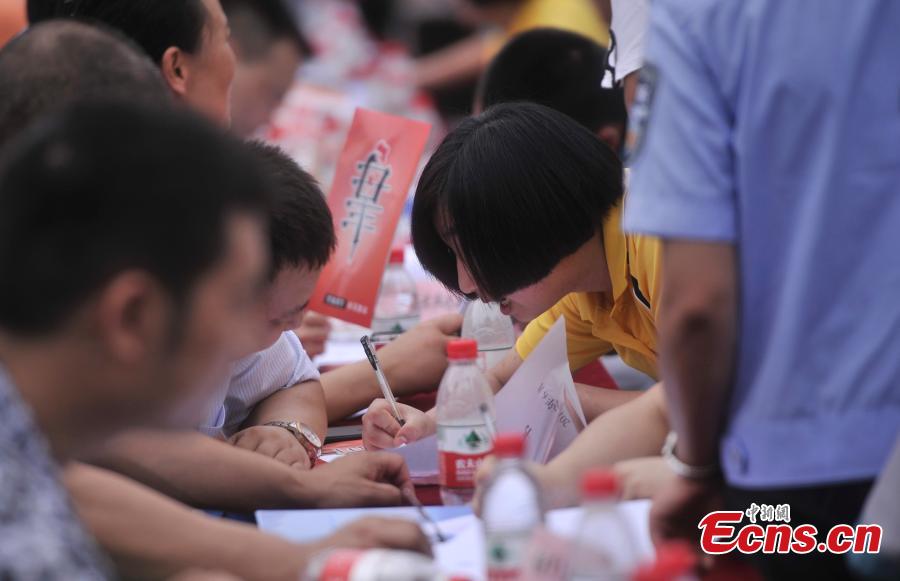 Drug addicts receiving rehabilitation treatment seek job information at a fair specially organized for them in Southwest China’s Chongqing municipality, June 24, 2015. Some 300 drug users from the city’s eight rehabilitation centers competed for 40 positions offered by 20 companies at the job fair. The jobs are in the sectors of electronic manufacturing, food processing and healthcare and have a monthly salary of 2000 ($322) to 5000 yuan. (Photo: China News Service/Chen Chao)