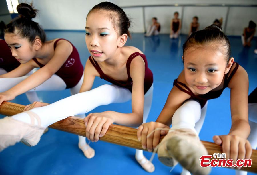 Children learn to dance at a summer training course in Bozhou city, East China’s Anhui province, June 29, 2015. Many children in the city took various training courses during their summer holidays. (Photo: China News Service/Liu Qinli)