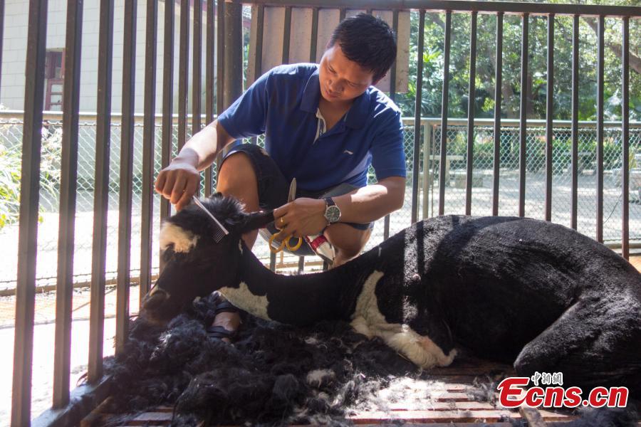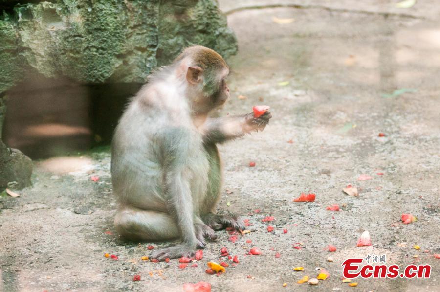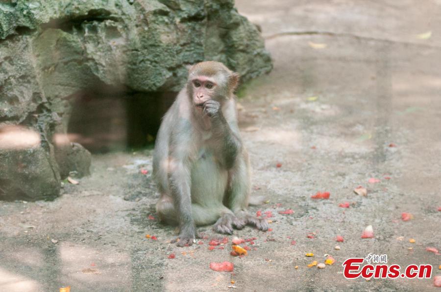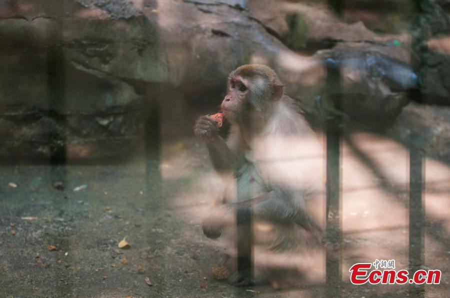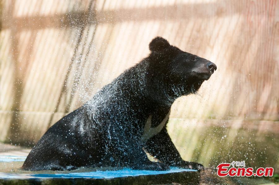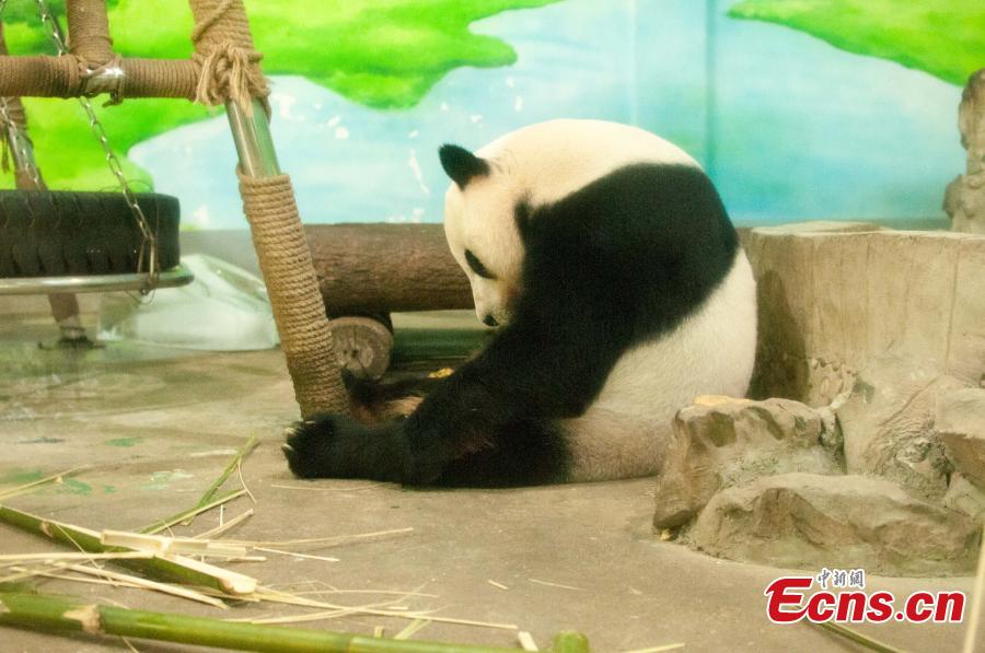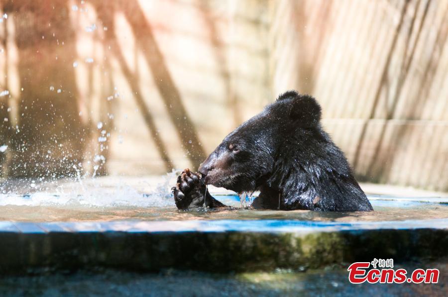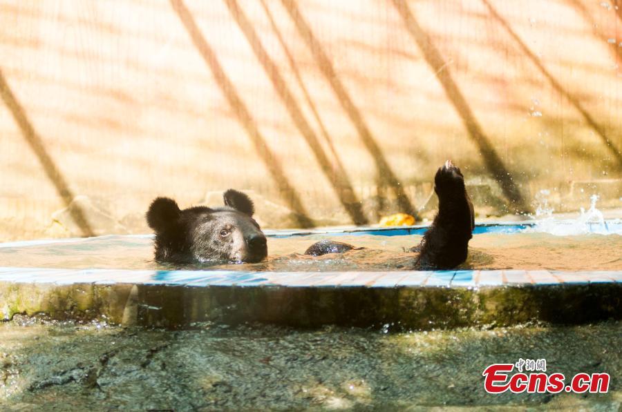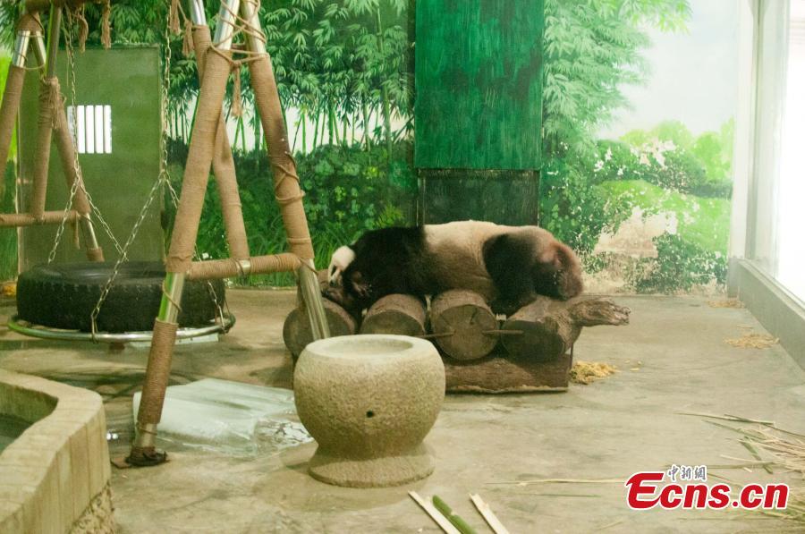 A giant panda plays in an air-conditioned hall at a zoo in Liuzhou city, Southwest China’s Guangxi Zhuang autonomous region, June 30, 2015. The zoo has tried different ways to help animals feel cool as the city suffered lingering heat waves. Temperature rose to 36 degrees Celsius on Tuesday. (Photo: China News Service/Huang Weiming)