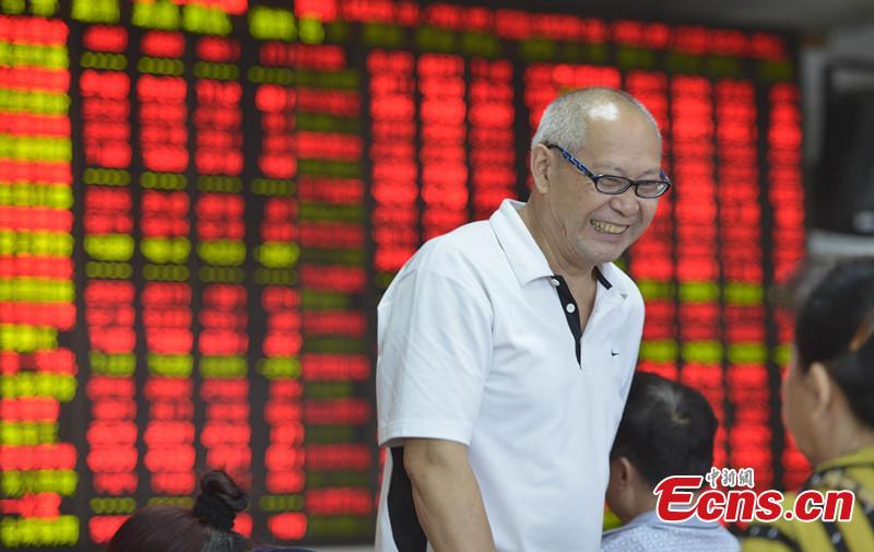 Investors look through stock information at a trading hall in a securities firm in Haikou, capital of southeast China's Hainan Province, June 30, 2015. Chinese shares bounced back from early morning losses and closed sharply higher on Tuesday following a nightmarish fortnight. The benchmark Shanghai Composite Index surged 5.53 percent to finish at 4,277.22 points. It fell more than five percent in the early morning to 3,847,88 points, extending losses from a peak of 5,178.19 points seen on June 12. The Shenzhen Component Index gained 5.69 percent to close at 14,337.97 points. The ChiNext Index, tracking China's Nasdaq-style board of growth enterprises, rallied 6.28 percent to end at 2,858.61 points. (CNS photo/Luo Yunfei)