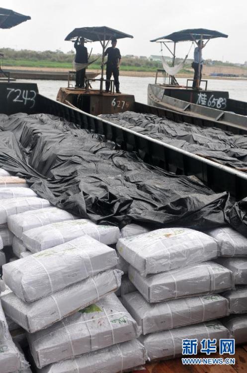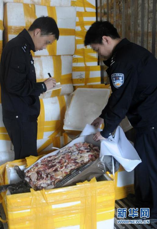 Frozen meat smuggled into China is destroyed in Dongxing city, in Southwest China’s Guangxi Zhuang autonomous region, March 10, 2015. Chinese customs officials seized 420,000 tonnes of smuggled frozen meat in crackdowns up to June 23rd. A policeman said some of the confiscated meat was packed in other countries during World War II. (Photo/Xinhua)