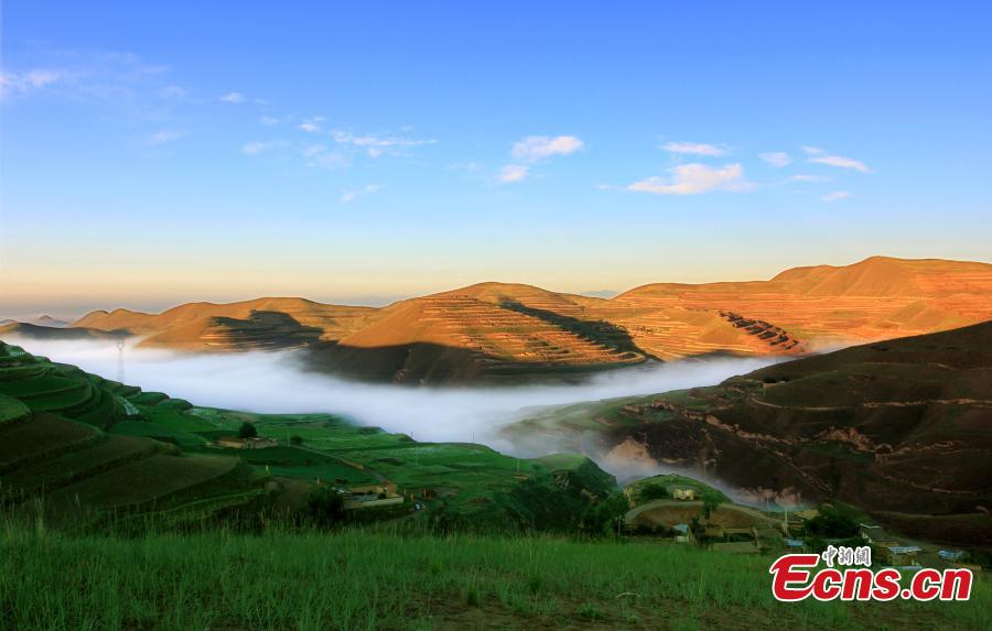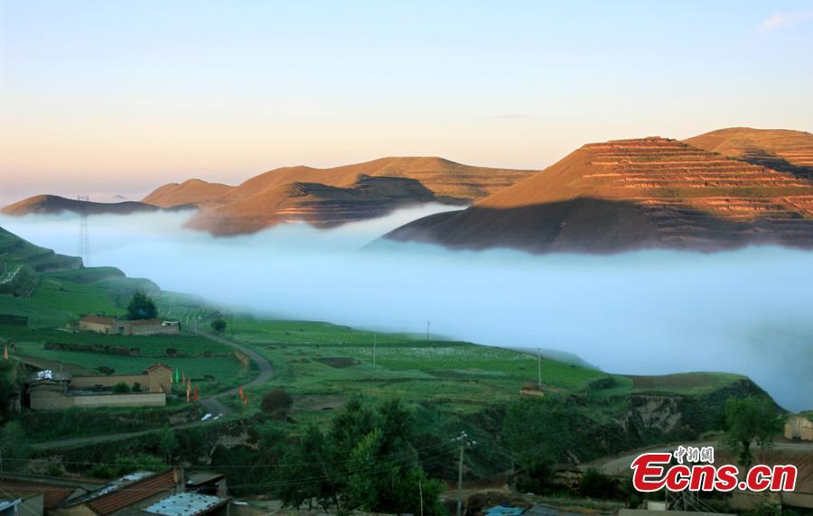 Clouds and fog surround mountains in Tongyuan township, Northwest China’s Gansu province, June 30, 2015. Days of rainfall have made the township located on the Loess Plateau more beautiful while heavy fog enshrouds the mountains. (Photo: China News Service/Lin Zhiguo)