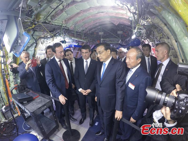 Premier Li Keqiang visits the headquarters of aircraft maker Airbus in Toulouse, France, on July 2. (Photo: China New Service/Liu Zhen)