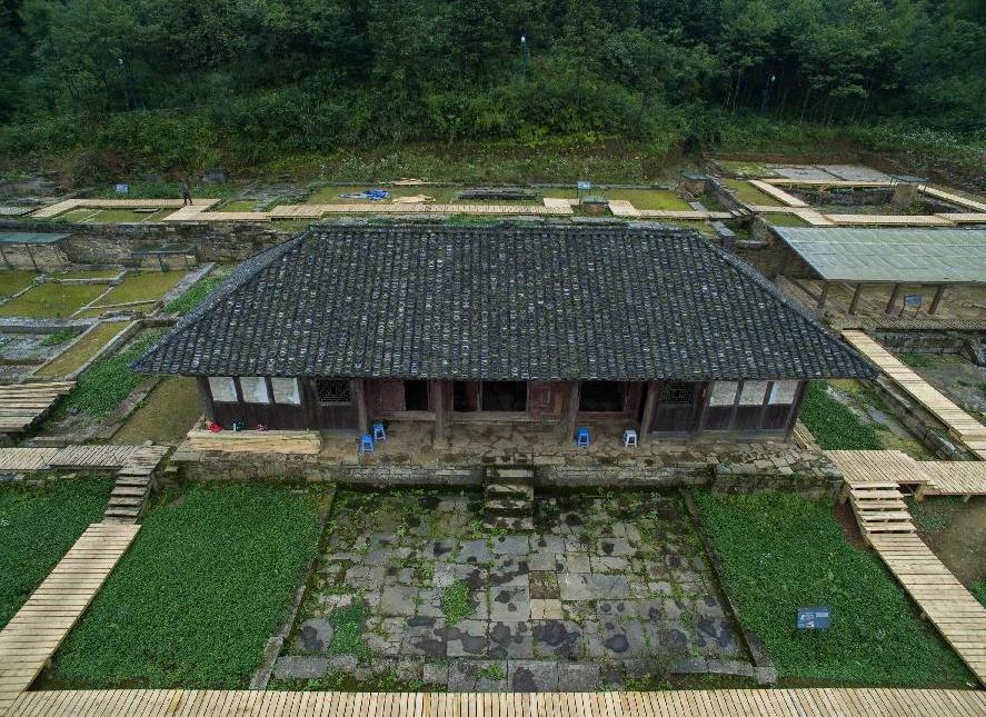 File photo taken on April 21, 2012 shows Tangya Tusi site in central China's Hubei Province. Tusi sites -- the remains of an ancient political system adopted by Chinese emperors to govern ethnic minority regions in south-central and southwest China -- were inscribed in the World Heritage List on Saturday. The inscribed sites, located in mountainous areas, are Laosicheng in Hunan Province, Tangya in Hubei Province and Hailongtun Fortress in Guizhou Province. Tusi literally means hereditary tribal headmen appointed by Chinese emperors to govern the often unruly ethnic minority regions in the central and western parts of south China, where the specific tribal governance system was adopted from the 13th to the early 20th century. (Photo: Xinhua/Hao Tongqian)