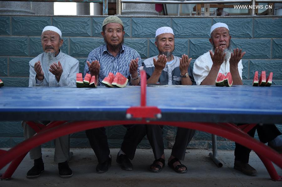 Muslims pray in Xihuan Mosque during the Muslim fasting month of Ramadan in Yinchuan City, capital of northwest China's Ningxia Hui Autonomous Region, July 3, 2015. (Photo: Xinhua/Wang Peng)