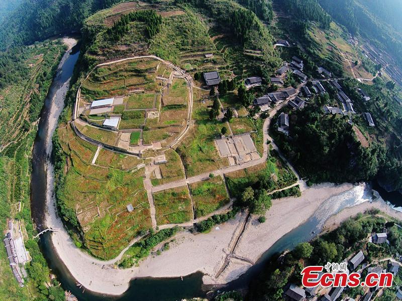 This file photo shows Laosicheng site and Lingxi River in central China's Hunan Province. Tusi sites -- the remains of an ancient political system adopted by Chinese emperors to govern ethnic minority regions in south-central and southwest China -- were inscribed in the World Heritage List on Saturday. The inscribed sites, located in mountainous areas, are Laosicheng in Hunan Province, Tangya in Hubei Province and Hailongtun Fortress in Guizhou Province. Tusi literally means hereditary tribal headmen appointed by Chinese emperors to govern the often unruly ethnic minority regions in the central and western parts of south China, where the specific tribal governance system was adopted from the 13th to the early 20th century. (CNS photo/Zhong Xin)