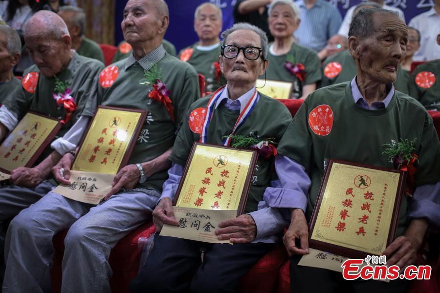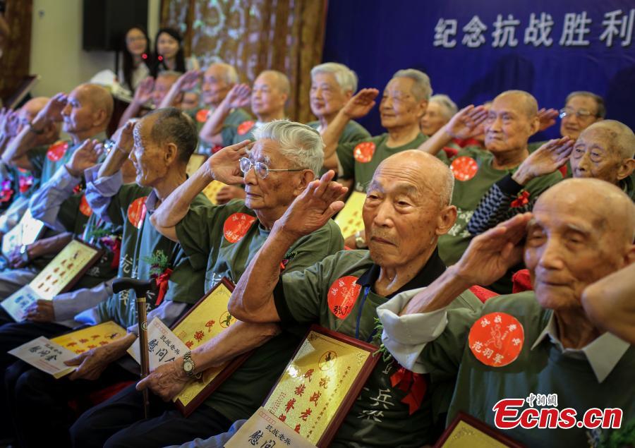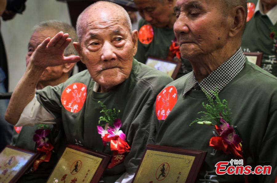 Thirty-three veterans from the War of Resistance Against Japanese Invasion (1937–1945) attend an event to mark the 78th anniversary of the July 7 Incident, in Nanjing, East China’s Jiangsu province, July 5, 2015. The July 7 Incident, or Marco Polo Bridge Incident, marked the beginning of total war between China and Japan. Some of the veterans at the event had been involved in the conflict in Shanghai, Wuhan, Changsha, or Changhe, or they worked in logistics, communications, or medical services. (Photo: China News Service/Yang Bo)