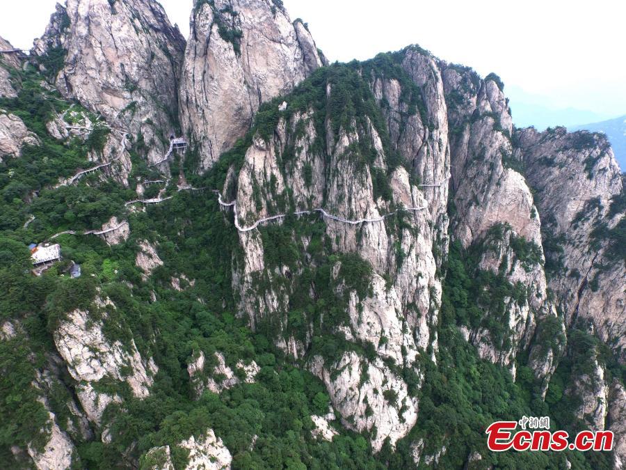 A view of a walkway along cliffs at Mazongling Mountain in Luoyang, Central China’s Henan province, July 5, 2015. The mountain, a scenic spot, is 2200 meters at its peak. (Photo: China News Service/Wang Zhongju)