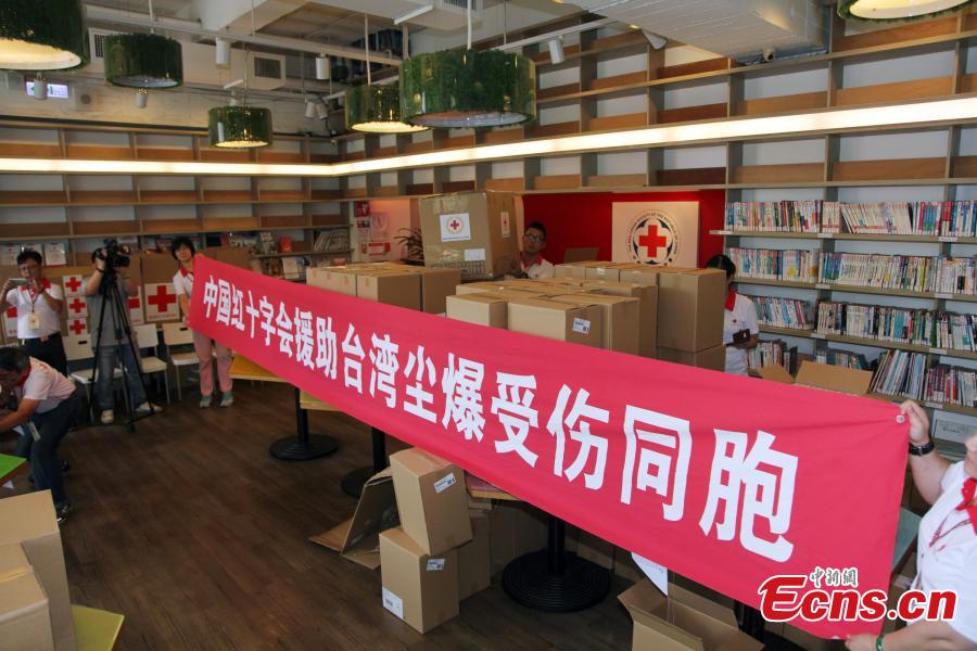 Medical supplies donated by the mainland’s Red Cross Society arrive in Taipei, Taiwan, July 8, 2015. The supplies will be distributed to 13 hospitals where people injured by a blaze at a water park party are receiving treatment. (Photo: China News Service/Huang Shaohua)