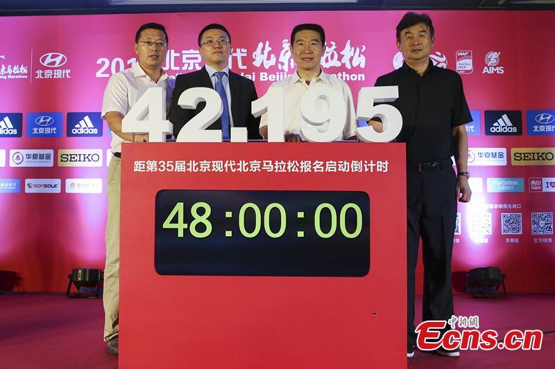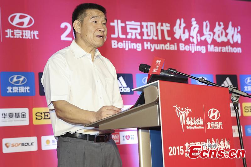 The Beijing Marathon Organizing Committee held a press conference,on July 8,2015,to announce 2015 Beijing Hyundai Beijing Marathon registration will start at 11:00 on July 10. Participants can go to its official web or through "mala mala" App to register. Beijing Marathon is in its 35 anniversary this year. The half schedule will be canceled. The competition will set up only 42.195 km full marathon and maintain 3000 participants as usual. The competition also has charity run, family run and other categories for choice. (CNS photo/Xiongran)