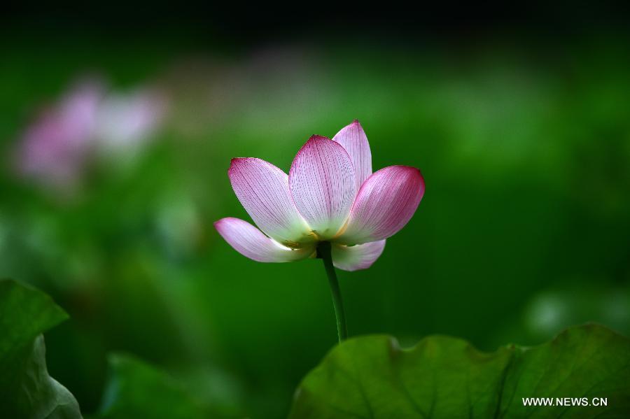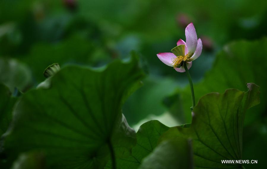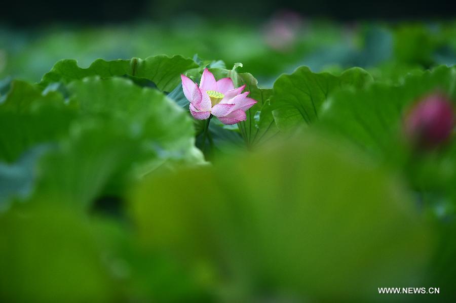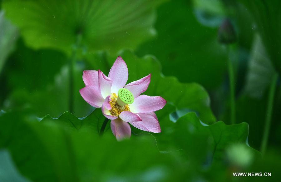 Photo taken on July 9, 2015 shows a lotus flower at Donghu park in Wuhan, capital of central China's Hubei Province. (Photo: Xinhua/Hao Tongqian)