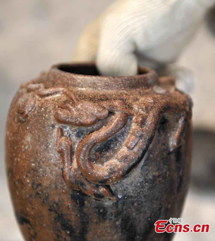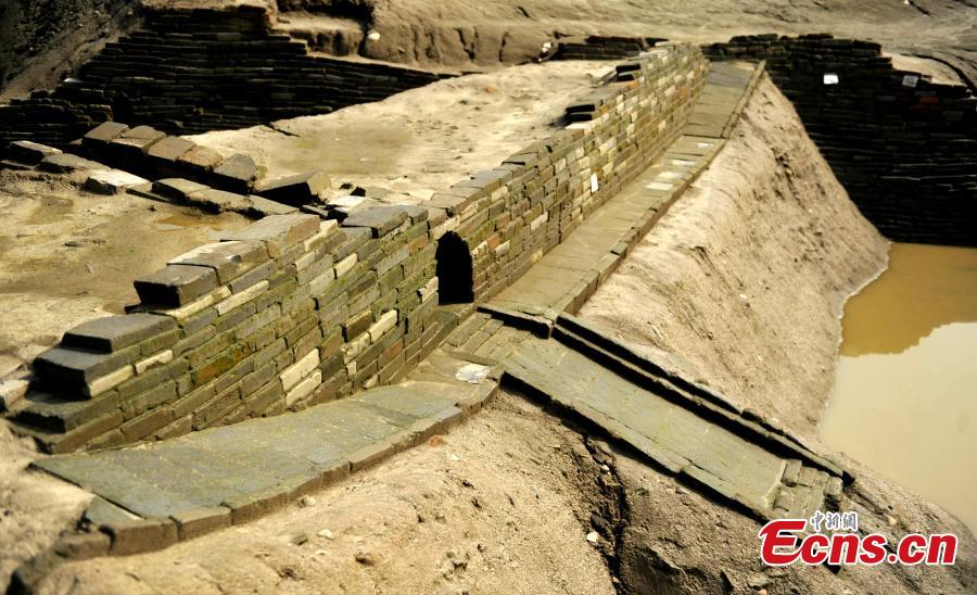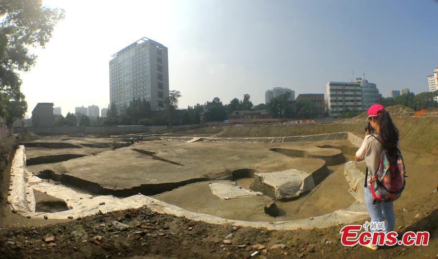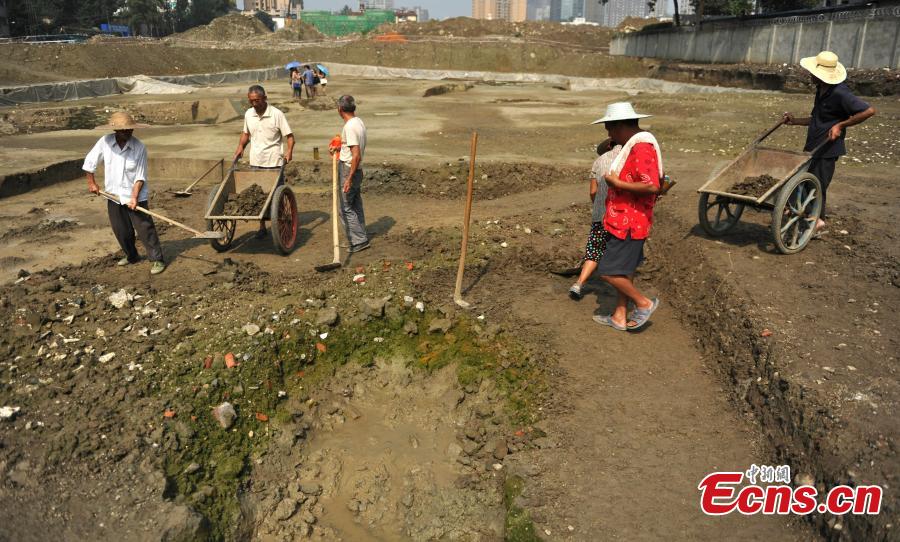 People work at a newly discovered garden site from the Tang Dynasty (618-907) in Chengdu city, Southwest China’s Sichuan province. Archaeologists have found 18 tombs, one well, eight pits, three ditches, and one pond. Porcelain and ceramic ware, as well as stone sculptures related to Buddhism, have also been found during the excavation. (Photo: China News Service/Liu Zhongjun)