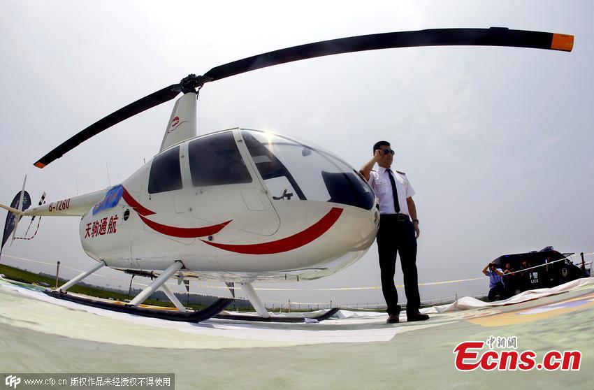 A helicopter lands at a base in Xi'an, Northwest China’s Shaanxi province, July 13, 2015. Didi Dache, China's leading taxi-hailing app and backed by Tencent Holdings, has joined with China Xi’an Airventure Association to provide a helicopter hailing service that includes three routes, with flight times between 10 and 20 minutes and at a cost of 998 to 1498 yuan ($160 -241). (Photo/CFP)