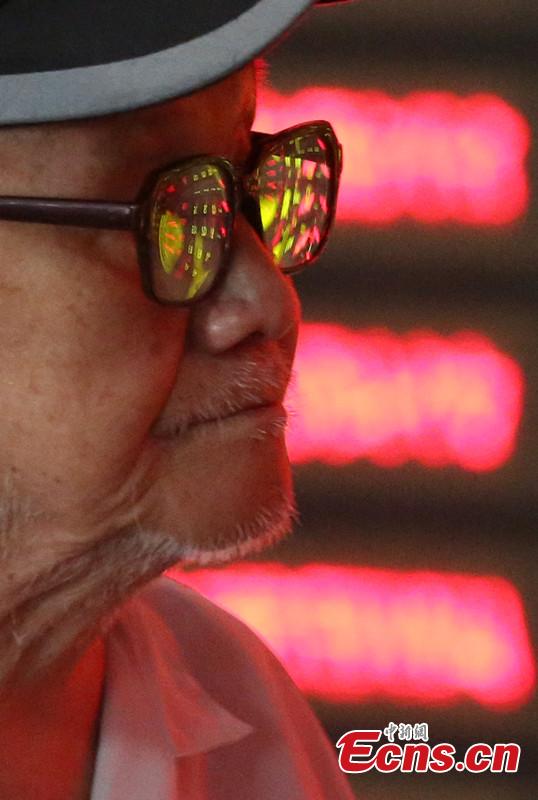 July 13th, Nanjing, a old man is watching the stocks. The SSE goes up 92.59 points to 3970.39 points, the increase is 2.39%. (CNS photo/Yang Bo)