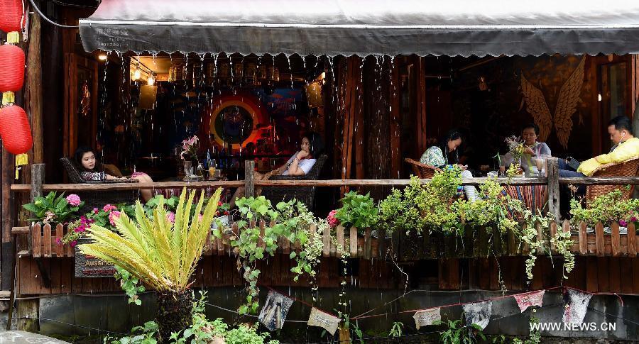 People visit Shuhe of Lijiang ancient town, southwest China's Yunnan Province, July 14, 2015. As a part of the Lijiang ancient town, which was listed as the World Cultural Heritages by the UNESCO in 1997, Shuhe attracts large amount of visitors. (Photo: Xinhua/Lin Yiguang)