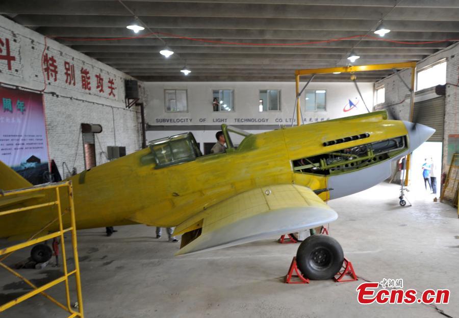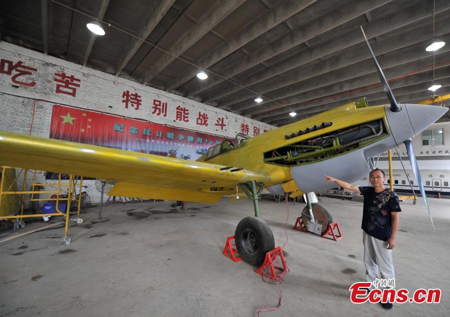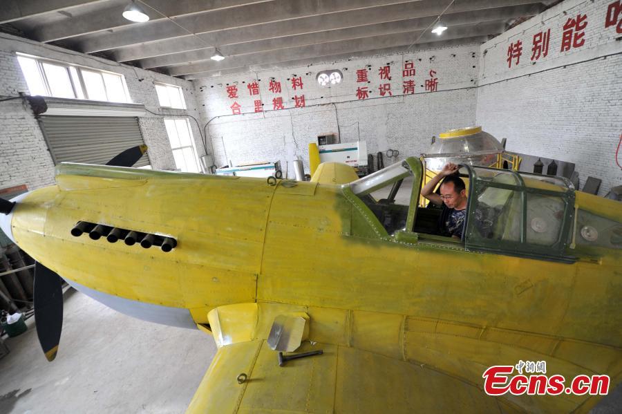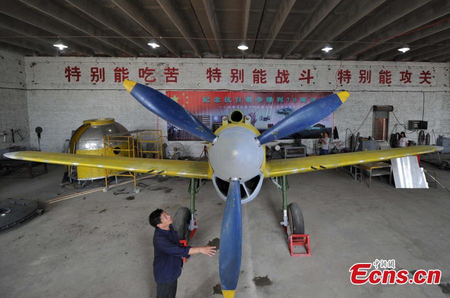 Xu Weilong, a model airplane enthusiast, shows off his homemade replica of World War II P-40C Warhawk used by Flying Tigers, in Shijiazhuang, North China’s Hebei province, July 16, 2015. It took Xu and his team three months to build the full-size replica to celebrate the 70th anniversary of the victory in the Chinese People's War of Resistance Against Japanese Aggression (1937-45). (Photo: China News Service/Zhai Rujia)