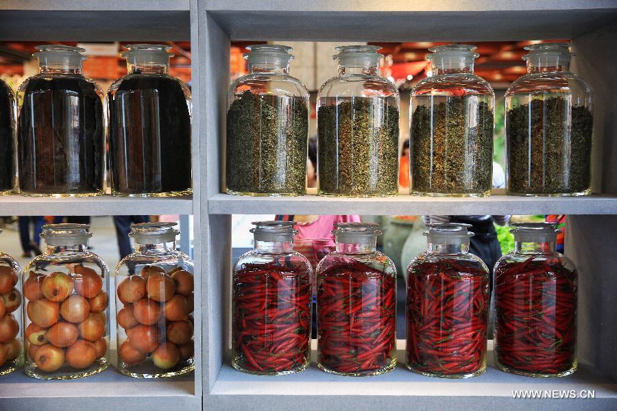 A cook from southwest China's Guizhou Province makes soup during the 2015 Taiwan Culinary Exhibition (TCE) in Taipei, southeast China's Taiwan, July 17, 2015. The four-day exhibition, with the participation of over 200 exhibitors, kicked off here Friday. (Photo/Xinhua)