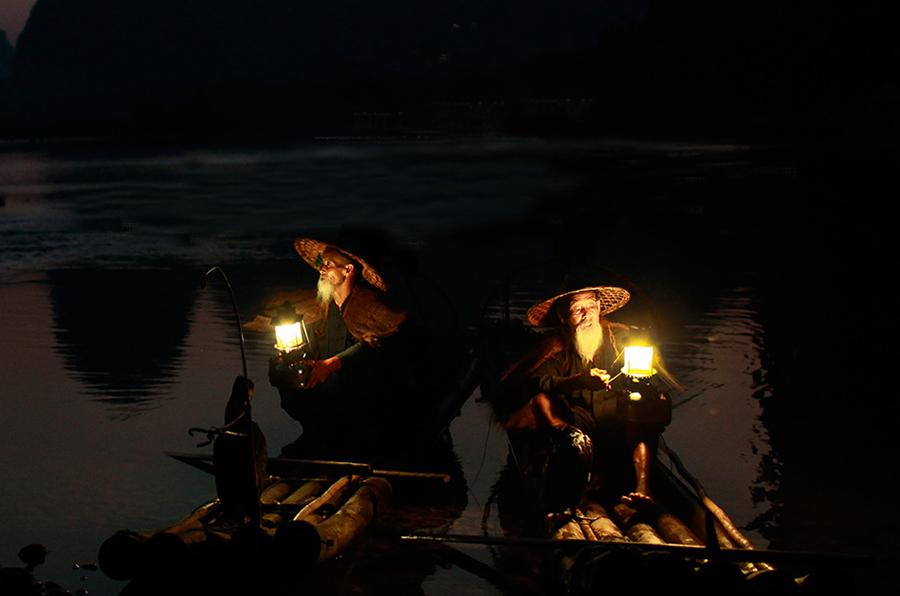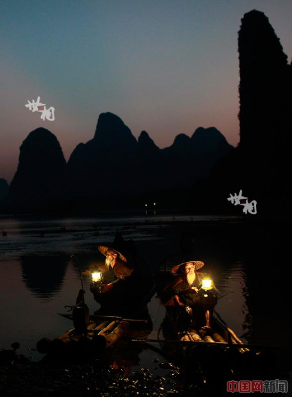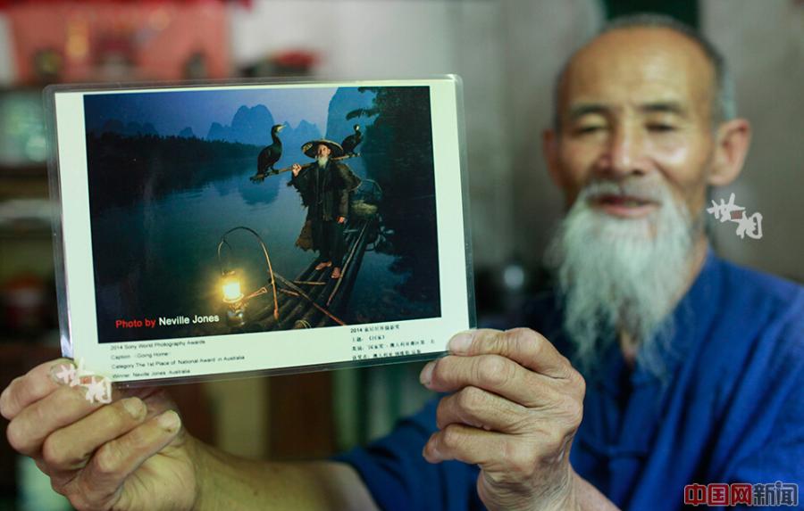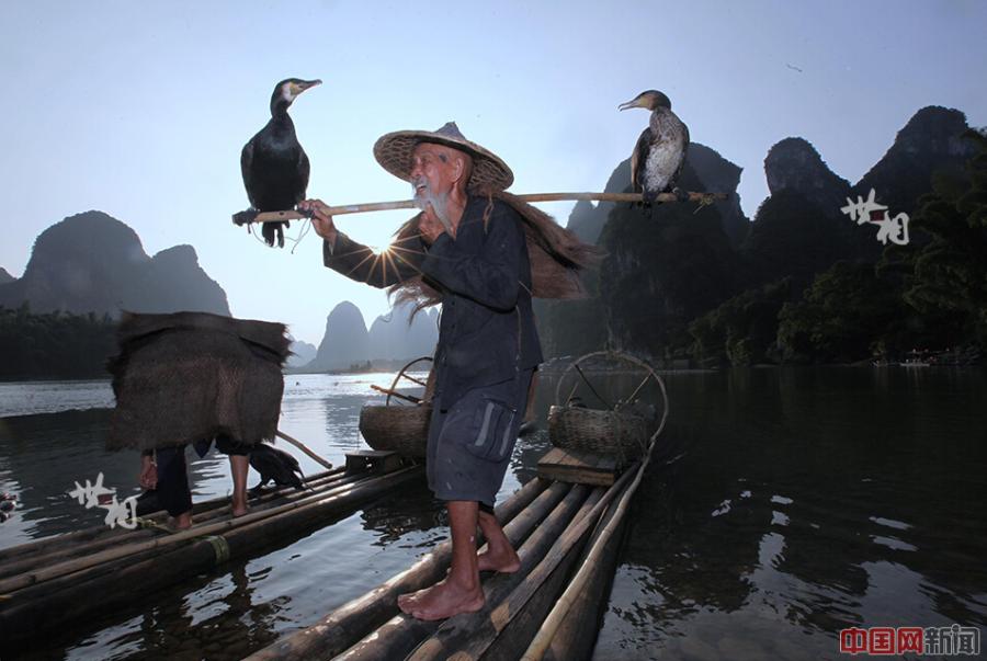 The model brothers, aged 86 and 76, both have long white beards, a typical feature of elderly Chinese men. The two brothers have drawn much attention and are especially favored by photographers, who prefer to take photos of them against the backdrop of the Lijiang River’s unique karst landforms. (Photo: Guilin Daily/Liu Jiaoqing)