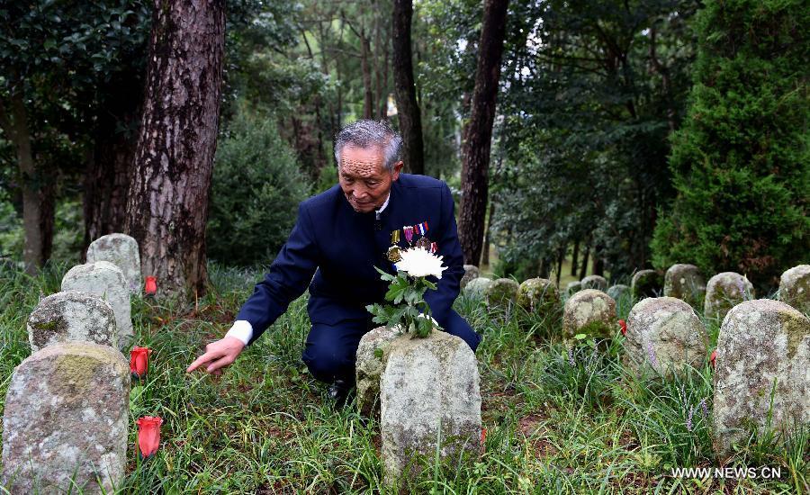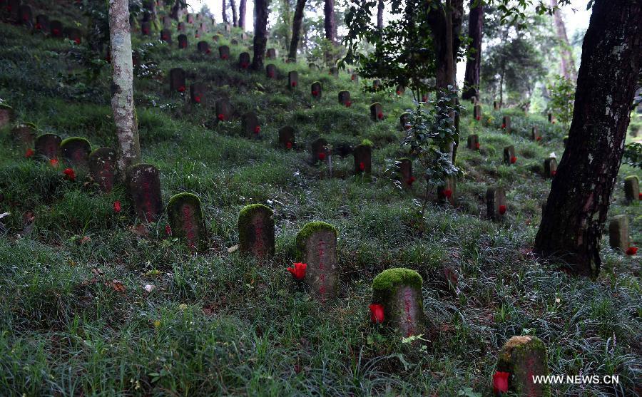 Photo taken on July 21, 2015 shows the tombs of deceased soldiers of the Chinese Expeditionary Force who died while fighting the Japanese army in World War II in Myanmar, at a martyrs' cemetery in Tengchong, a border town in southwest China's Yunnan Province. The cemetery was established in 1945 to honor deceased soldiers of the Chinese Expeditionary Force that reclaimed Tengchong from Japanese forces. (Photo: Xinhua/Lin Yiguang)