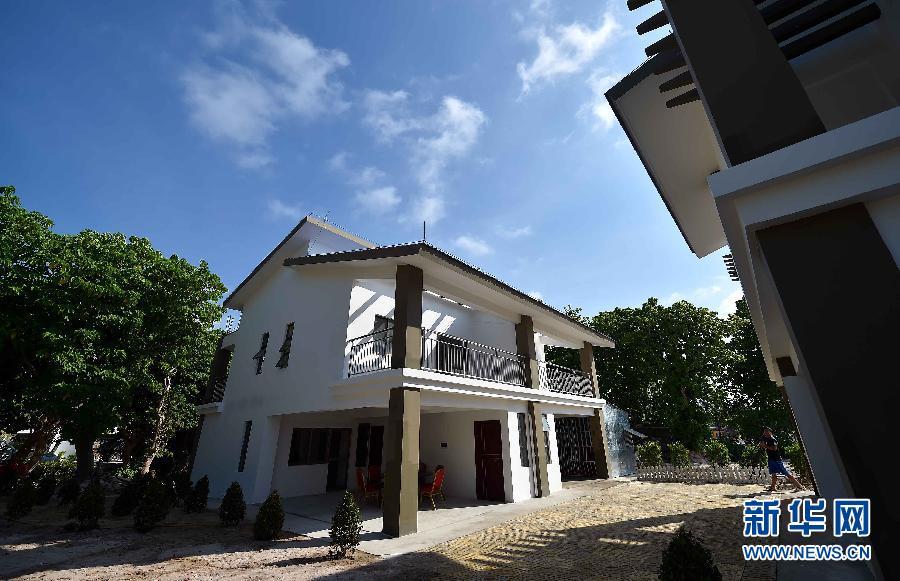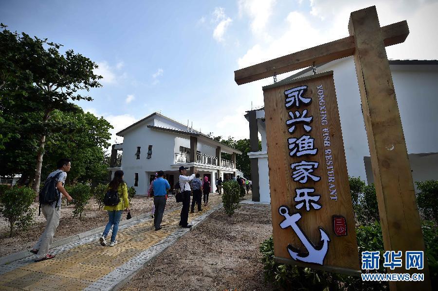Photo taken to July, 25 shows the new opening Yongxing fish restaurant at Yongxing Island in Sansha City, south China's Hainan Province. The first group of residential buildings were completed at the fishermen settlements in the Island, July. 25, 2015. (Photo/Xinhua)