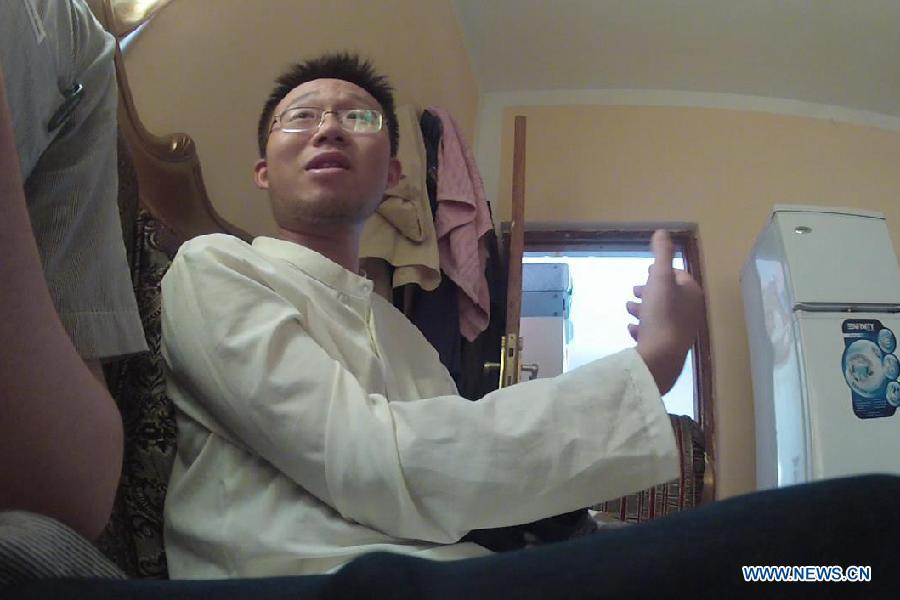 Photo taken on July 23, 2015 shows the detained Chinese student Liu Tuo talking at a local police station in the city of Samarra, northen Iraq. The Chinese college student detained in northern Iraq was freed by local police on Monday, according to Chinese embassy in the country. (Photo: Xinhua/Chen Xu)