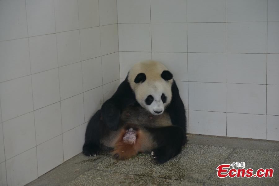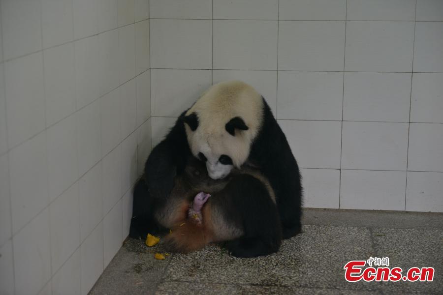 A panda cub, which weighs 200 grams, is being kept in an incubator in the Bifengxia Base of the China Conservation and Research Center for the Giant Panda in Ya’an, Southwest China’s Sichuan province, July 27, 2015. Thai-born panda "Lin Bing" gave birth to two cubs on Monday afternoon. (Photo: China News Service/Zhao Yan)