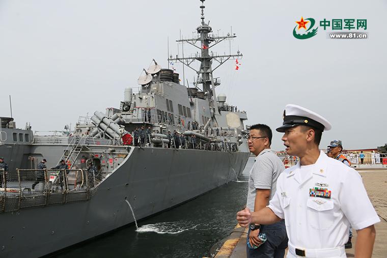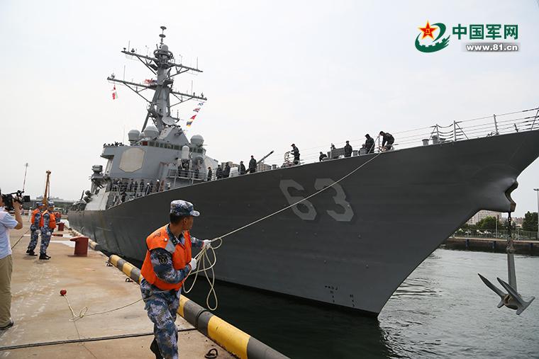 The Arleigh-burke class guided-missile destroyer USS Stethem (DDG 63) of the U.S. Navy arrives in Qingdao, a port city in east China's Shandong province, on the morning of July 28. (Photo: Chinamil.com.cn/Wang Songqi)