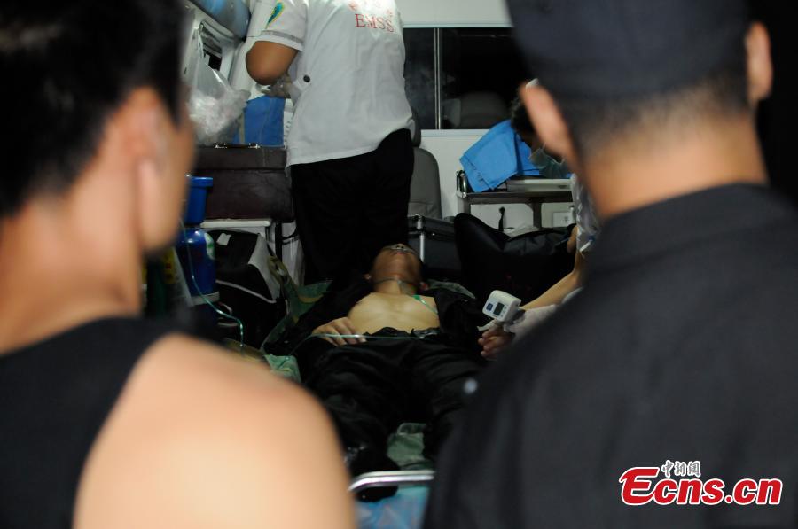 A special police team prepares to storm a room where a man has taken a woman hostage in Liuzhou city, Southwest China’s Guangxi Zhuang autonomous region, July 28, 2015. Three people, including two police officers, were injured after the five-hour standoff ended. (Photo: China News Service/Huang Weiming)