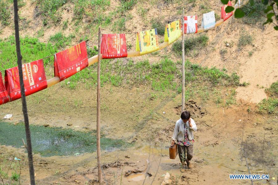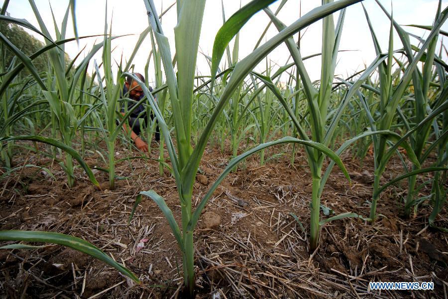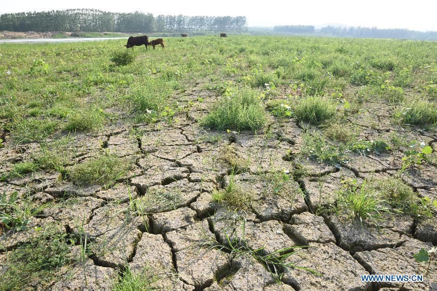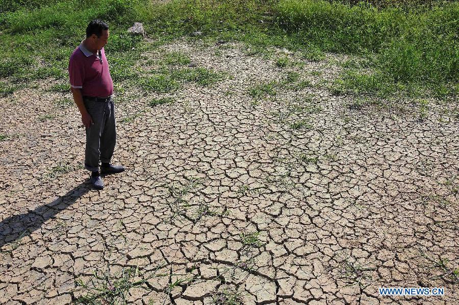 A farmer labors in a corn field severly affected by drought in Yongan County of Zaozhuang city, east China's Shandong Province, July 29, 2015. Shandong Province has been going through drought since summer this year. (Photo: Xinhua/Sun Yang)