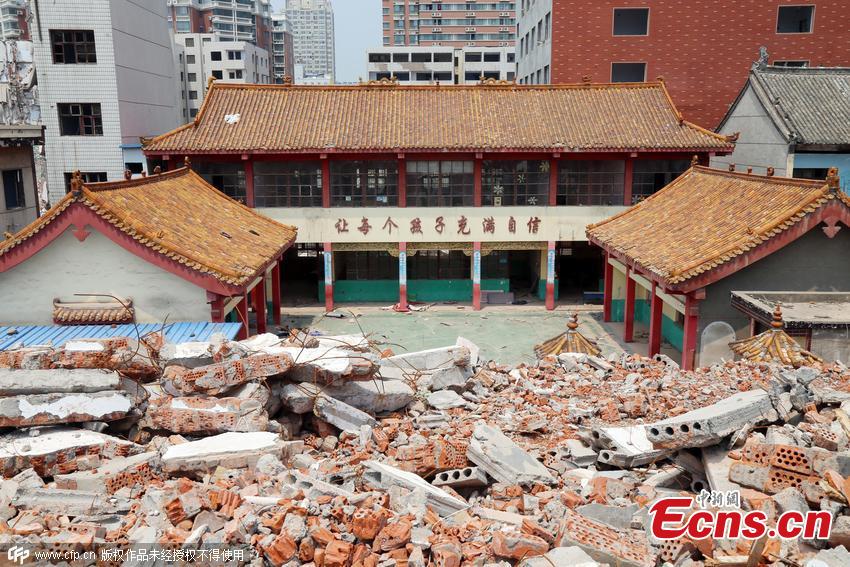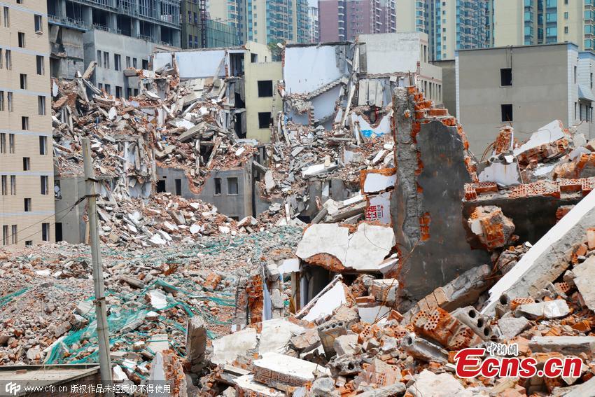 An aerial view of buildings being demolished in Zhengzhou city, Central China’s Henan province, July 29, 2015. Dust from construction sites is thought to be one of three main reasons for Zhengzhou’s poor air quality, which continually ranks as the second worst in China. The city has more than 2,100 construction sites and a total area of 71 million square meters of buildings being demolished. Netizens joke that Zhengzhou looks like an earthquake-hit zone from the air.(Photo/CFP)