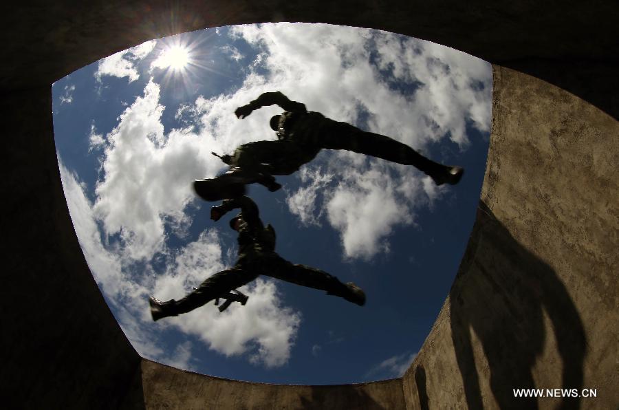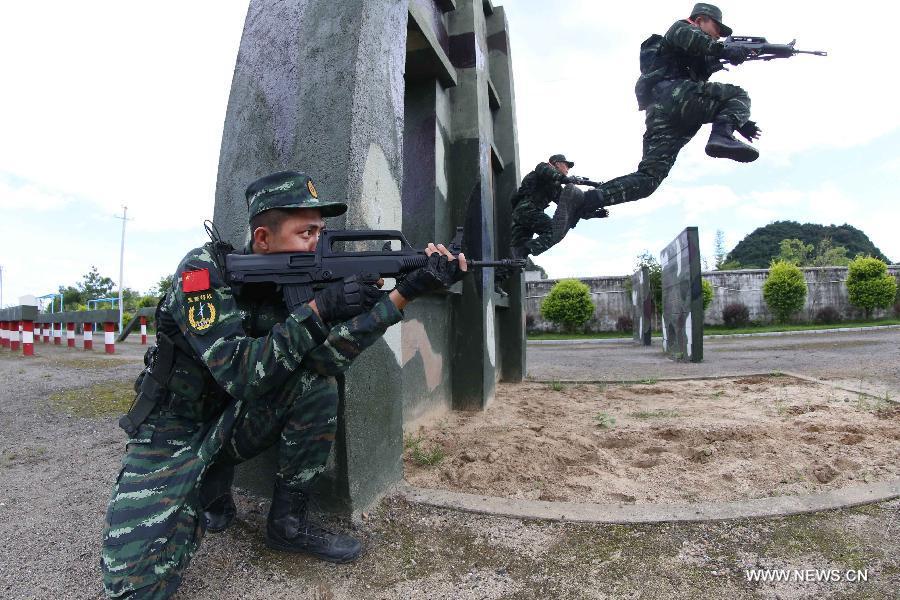"Cobra" commandos from Guilin armed police unit exercise in Guilin, south China's Guangxi Zhuang Autonomous Region, July 30, 2015. "Cobra" commando takes charge of the anti-terrorism task in northern Guilin. (Photo: Xinhua/Liu Jiaoqing)