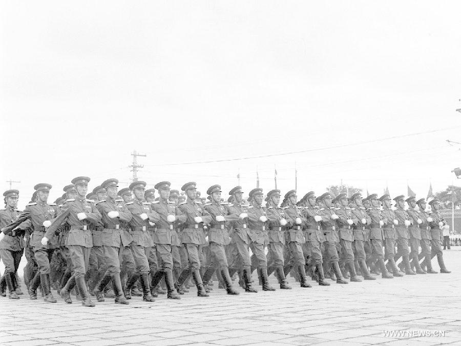 The file photo taken in 1953 shows paratroop of the Chinese People's Liberation Army (PLA) attending a parade to celebrate the 4th anniversary of the founding of the People's Republic of China in Beijing, capital of China. China will hold a parade on Sept. 3, 2015 to commemorate the 70th anniversary of the victory in the Chinese People's War of Resistance against Japanese Aggression and the victory of World's Anti-Fascist War. (Photo: Xinhua/Xu Ying)