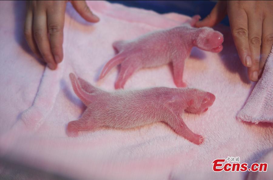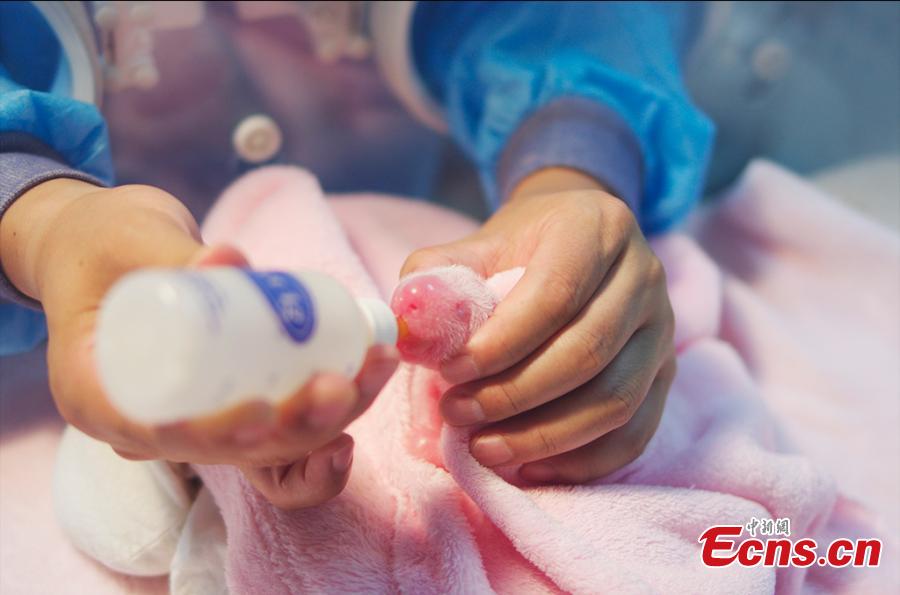 A worker feeds a newborn panda cub at the Chengdu giant panda breeding center in southwest China’s Sichuan Province. Two pandas gave birth to twins on August 2, 2015, doubling the number of sets of twins born this year and taking the total number of cubs to nine so far. Jing Jing, in her first pregnancy, gave birth at 5:40am and 6:12am. Her cubs weighed in at 171.5 grams and 163.5 grams. Si Yuan, in her second pregnancy, gave birth at 11:12am and 11:35am. Her cubs weighed 174.1 grams and 180.4 grams. (Photo provided to China News Service)