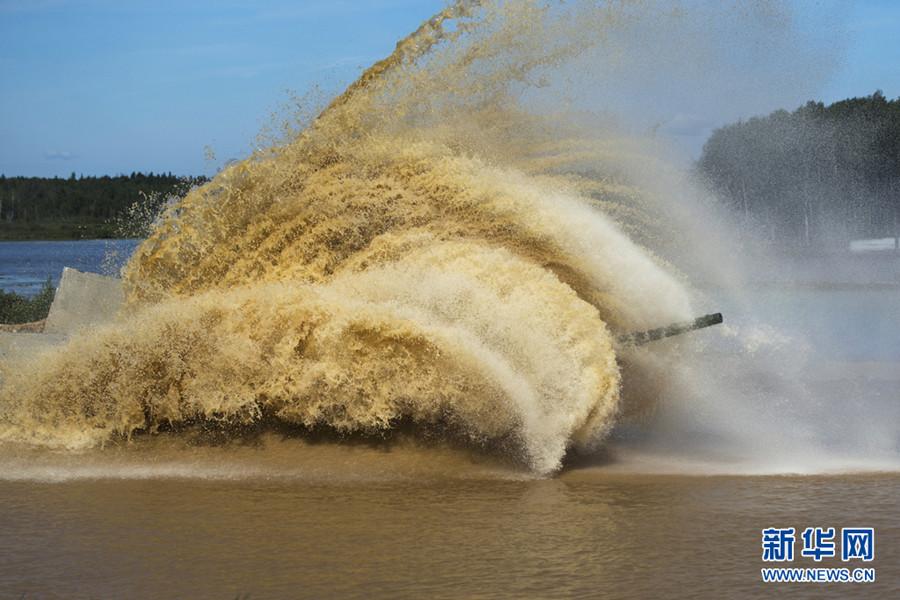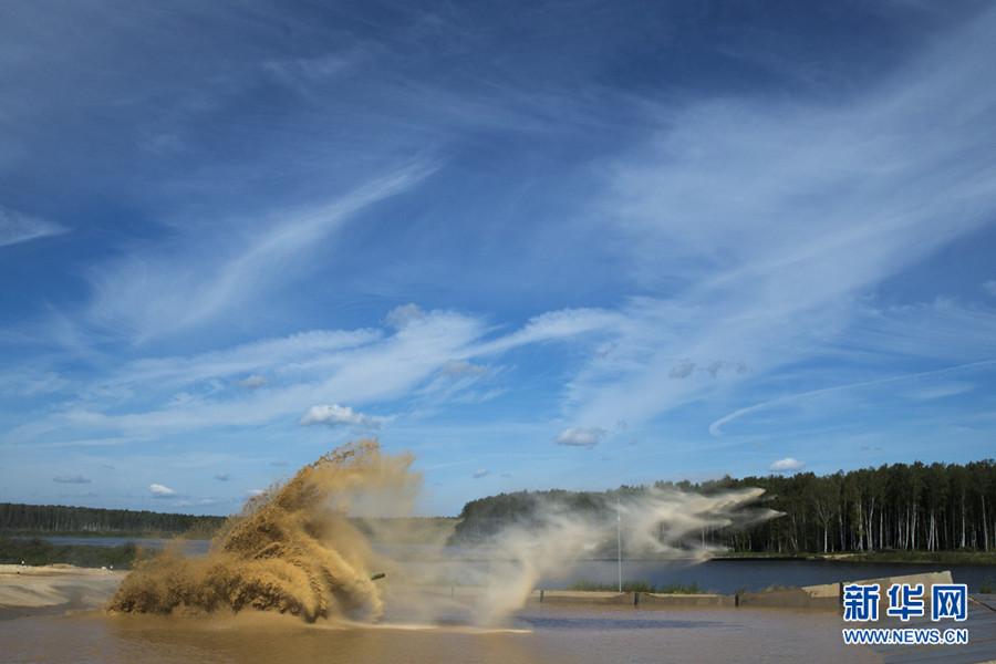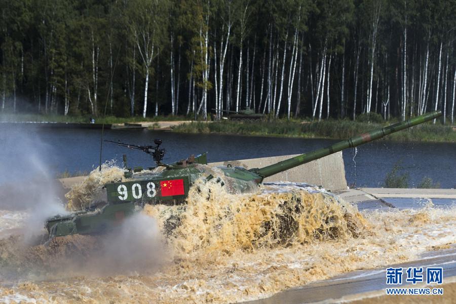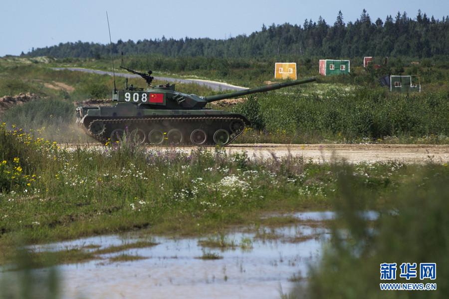 A Chinese tank is in the process of contest during the Russian International Army Games 2015 in Moscow, Russia, Aug. 3, 2015. (Photo/Xinhua)