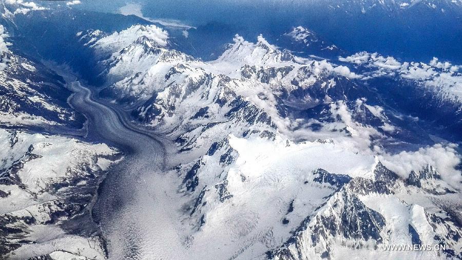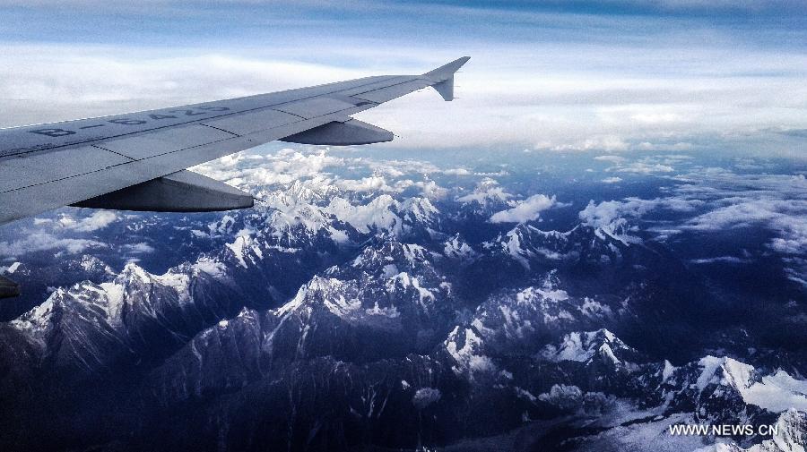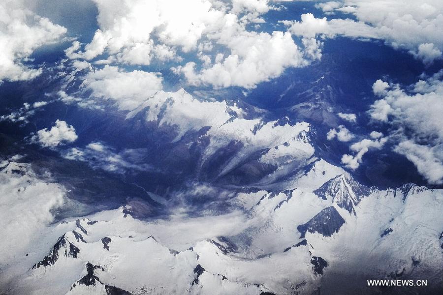 Photo taken on Aug. 3, 2015 from a flight shows the landscape of the Qinghai-Tibet Plateau, southwest China. (Photo: Xinhua/Zheng Huansong)