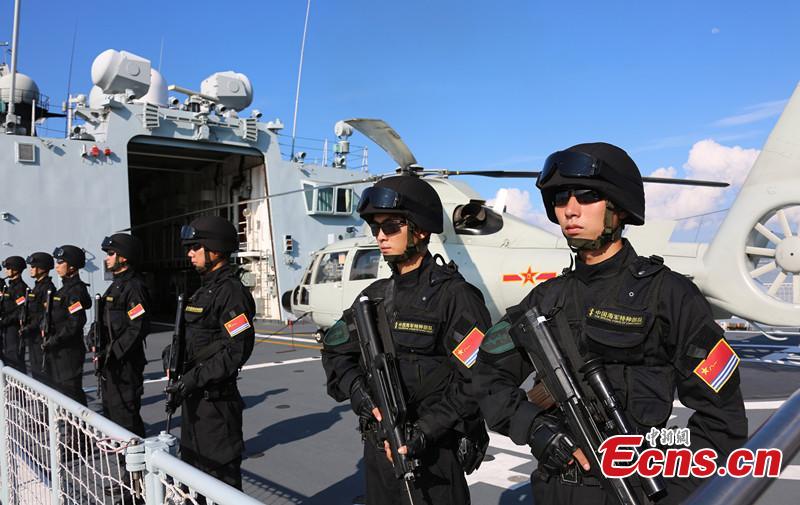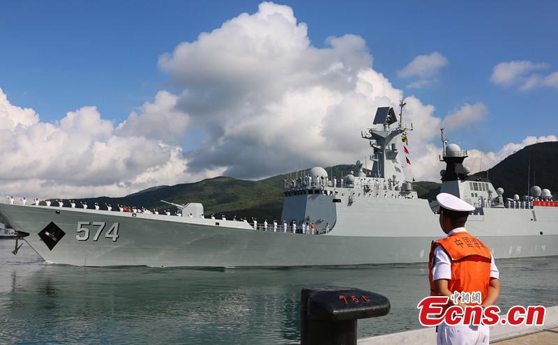A Chinese navy vessel prepare to sail at a naval port in Sanya, south China's Hainan Province, Aug. 4, 2015. The 21st fleet of Chinese navy escort left for Gulf of Aden and waters off Somalia to take over the 20th fleet for the escort mission on Tuesday. (CNS photo/Yin Haiming)