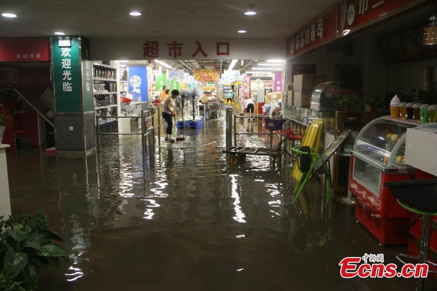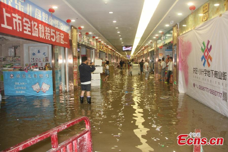 Stores in NW China flood after rainstorm (1/4)
