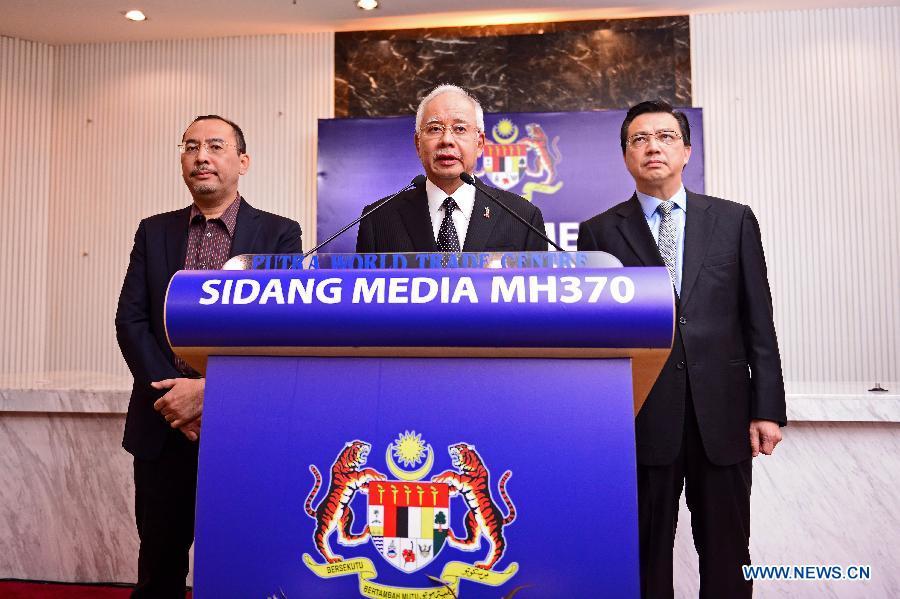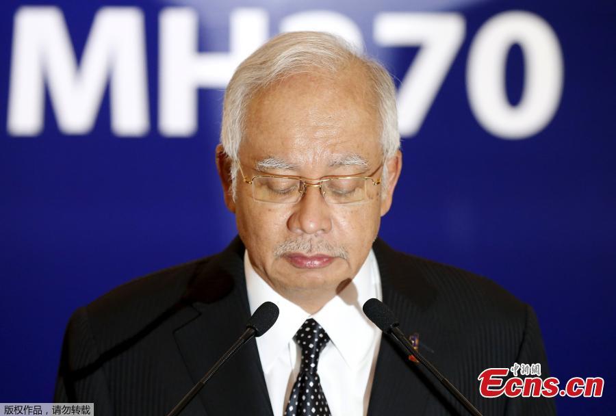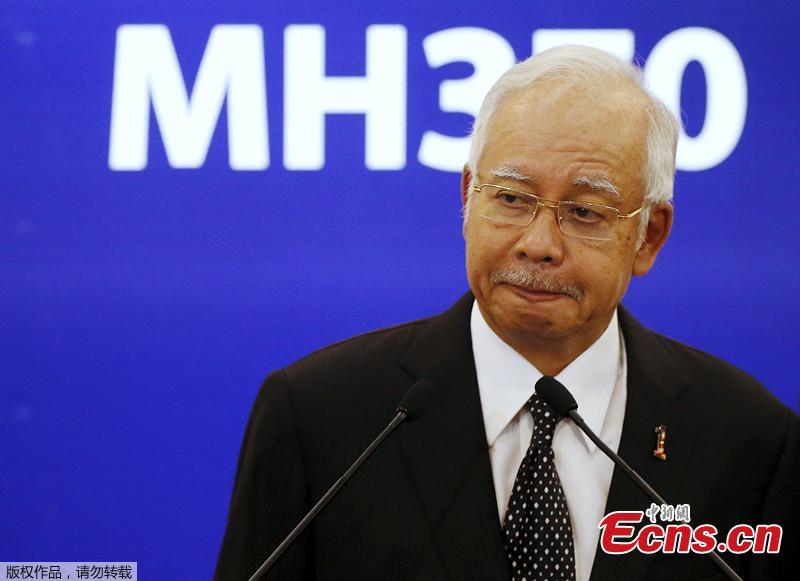 Malaysian Prime Minister Najib Razak (C) attends a press conference on the missing Malaysian Airlines flight MH370 in Kuala Lumpur, Malaysia, Aug. 6, 2015. Verification had confirmed that the debris discovered on the Reunion Island belongs to the missing Malaysian Airlines flight MH370, Malaysian Prime Minister Najib Razak announced here early on Thursday. (Photo/China News Service)
