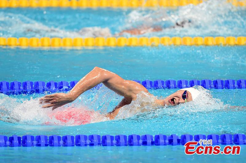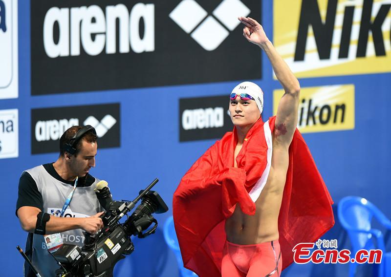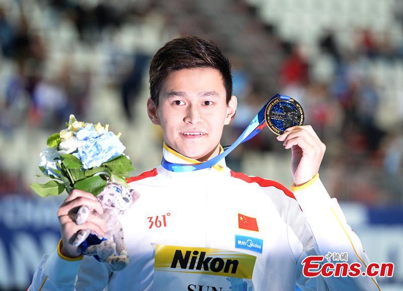 Sun Yang wins third consecutive 800m free gold at worlds(1/4)