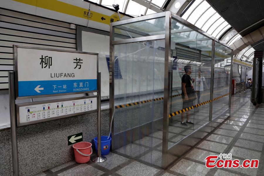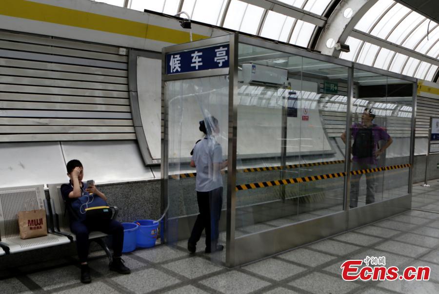 A subway commuter cools off in an air-conditioned shelter built at Liufang station on the Subway Line 13 in Beijing. Subway Line 13, also known as the City Rail Line, traverses through the northern suburbs of the city. The shelter helps make passengers taking the line in summer more comfortable. However, Beijing authorities said there are no plans to build more. (Photo: China News Service/Li Huisi)