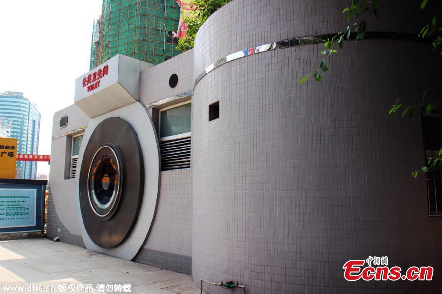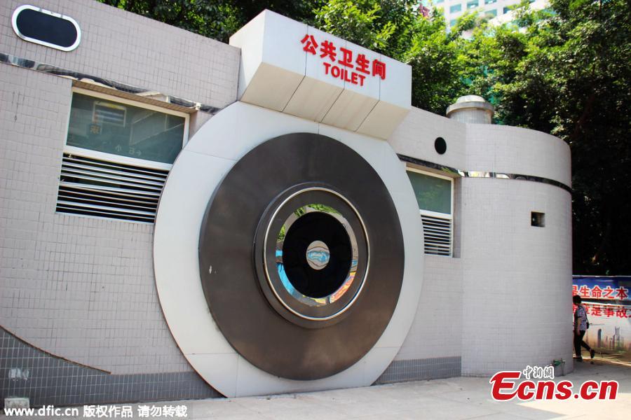A public toilet in the shape of a camera is seen on a street in Chongqing municipality on August 6, 2015. (Photo/IC)