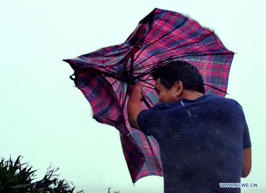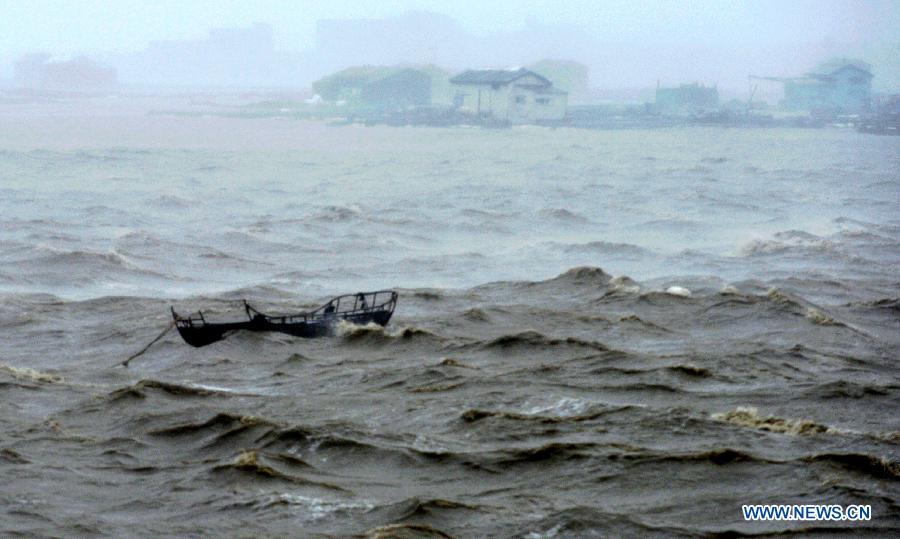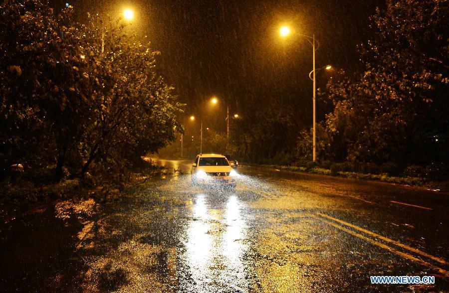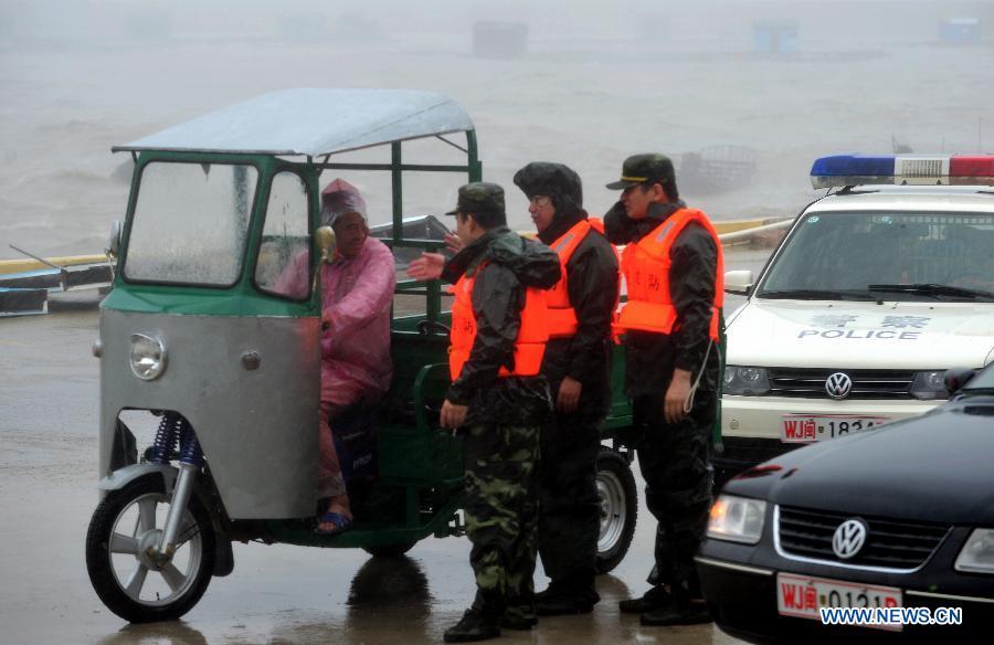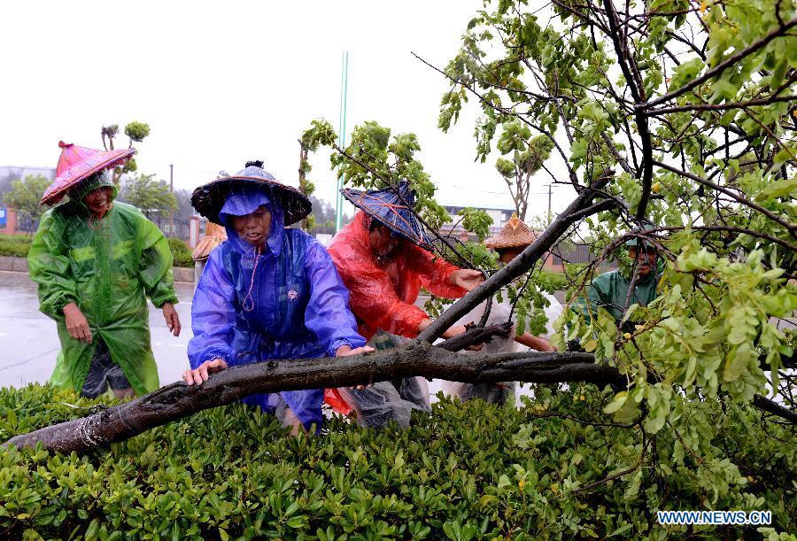 Staff members move away fallen trees in Putian, southeast China's Fujian Province, Aug. 8, 2015. Super typhoon Soudelor landed on the coast of Putian in Fujian Saturday evening. (Xinhua/Wei Peiquan)