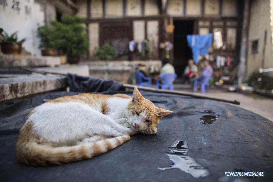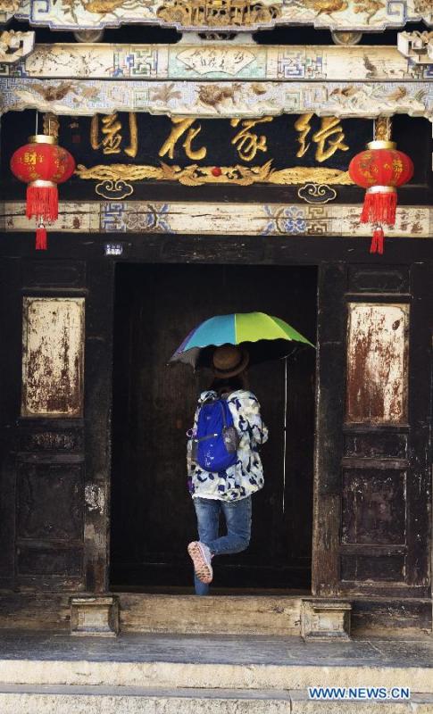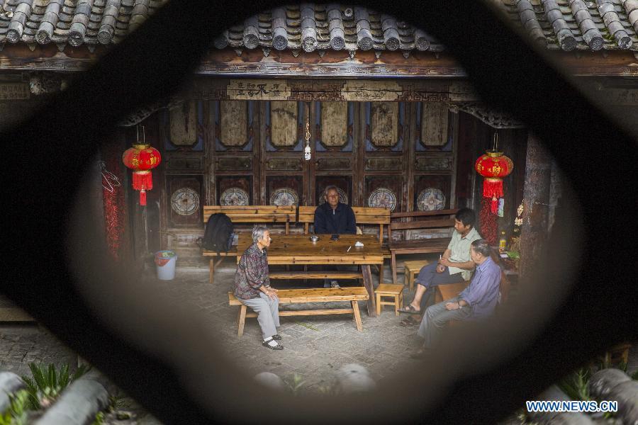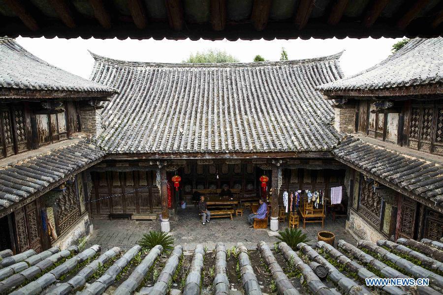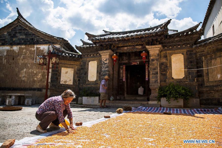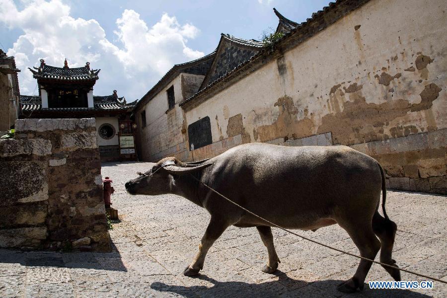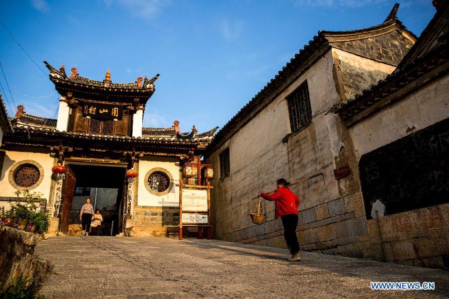 A farmer comes back from farmland in Tuanshan village, Hani-Yi Autonomous Prefecture of Honghe, southwest China's Yunnan Province, Aug. 8, 2015. Tuanshan village is known for its well-preserved ancient architecture. (Photo: Xinhua/Cheng Xueli)