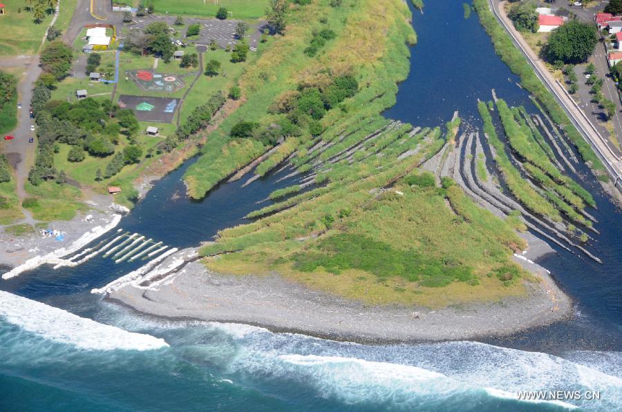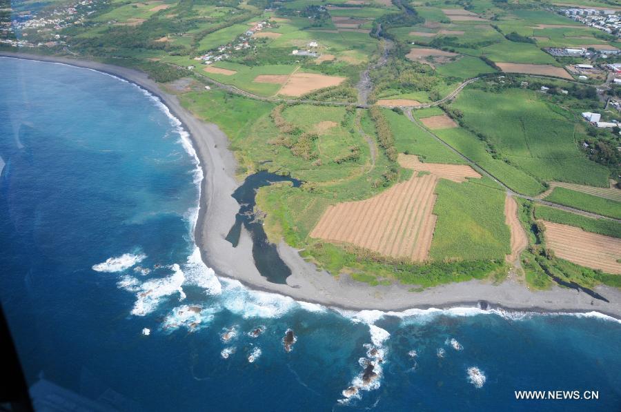 Aerial Photo taken on Aug. 9, 2015 shows the eastern coast of France's overseas island La Reunion in the Indian Ocean. France on Aug. 7 announced that hunts for more MH370 debris will continue for at least a week off la Reunion after a wing section was spotted near the island. (Photo: Xinhua/Zhang Chuanshi)