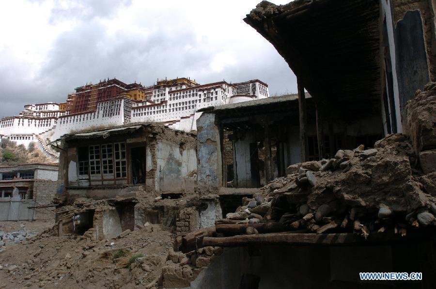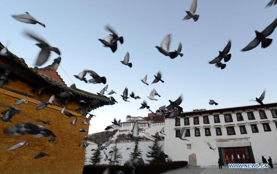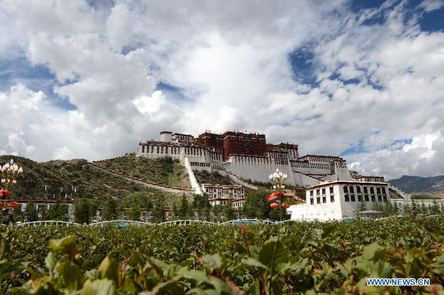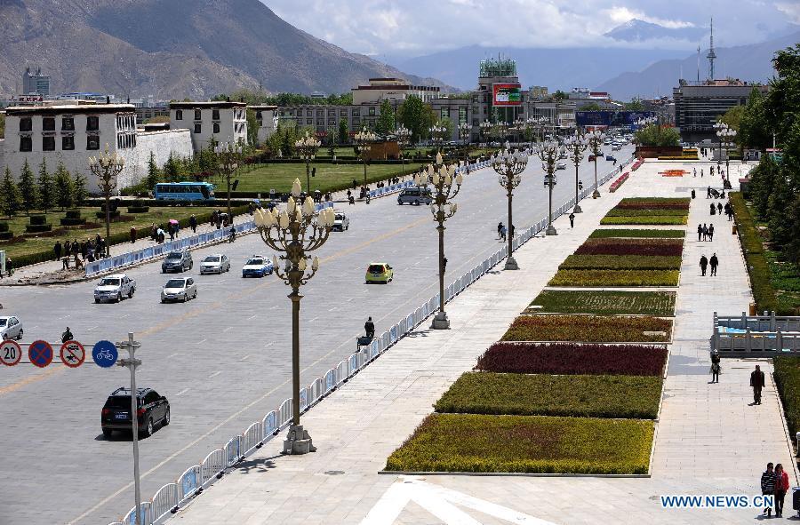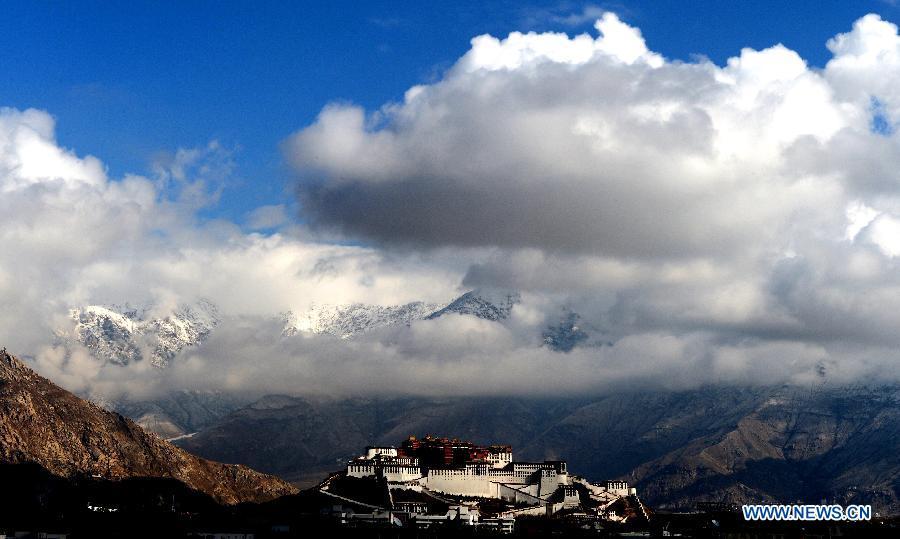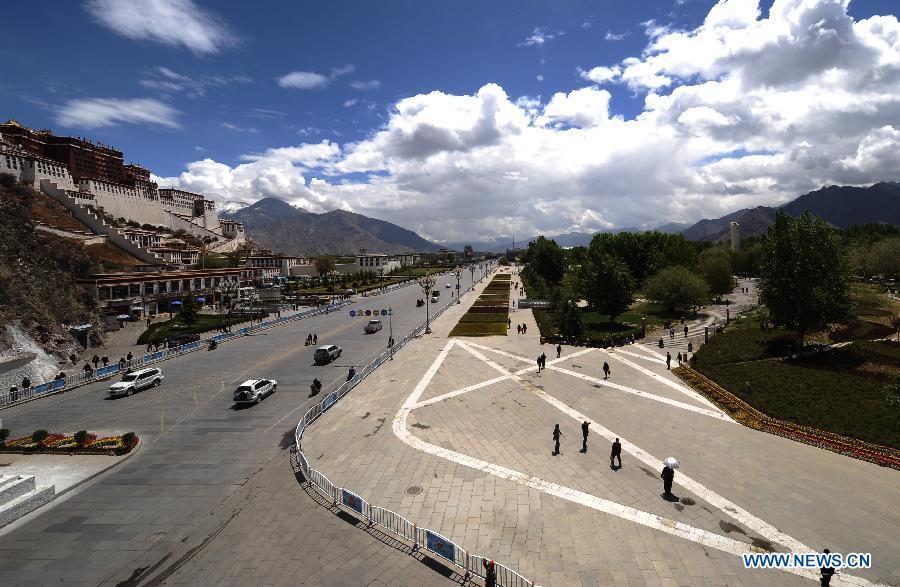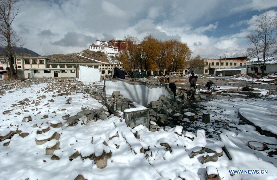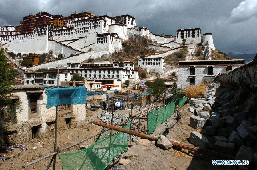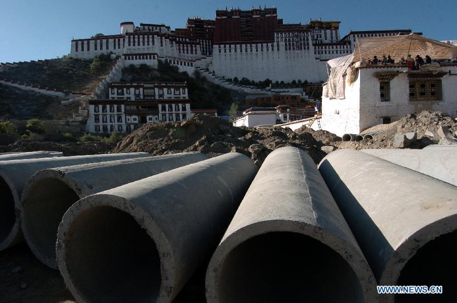 Photo taken on Nov. 24, 2004 shows the Potala Palace square under construction in Lhasa, capital of southwest China's Tibet Autonomous Region. Promoted by government, the Potala Palace square, like other public infrastructure in Tibet, has been largely improved in the past ten years. (Photo: Xinhua/Chogo)