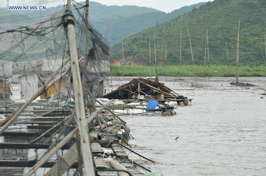 A villager shows his ruined aquaculture zones due to Typhoon Soudelor in Xiwei Village of Fu'an, southeast China's Fujian Province, Aug. 10, 2015. Typhoon Soudelor left three people dead and one other missing in Fujian. Over 1.3 million people were affected. (Photo: Xinhua/Lin Shanchuan)