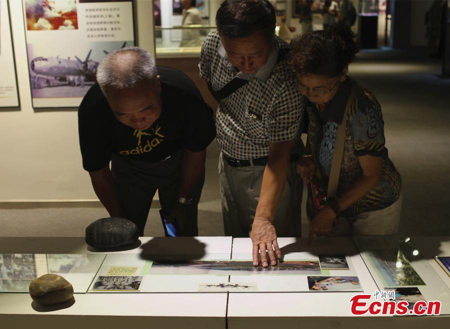 Visitors view pictures at an exhibition about "Flying Tigers" in southwest China's Chongqing, Aug. 15, 2015. A large amount of photos, paintings and personal belongings about "Flying Tigers" were displayed at the exhibition opened on Saturday. The Flying Tigers, officially known as the American Volunteer Group of the Chinese Air Force, were formed in 1941 and led by U.S. General Claire Lee Chennault to help China drive out invading Japanese troops. (CNS photo/Zhou Yi)