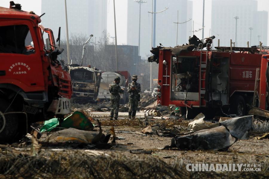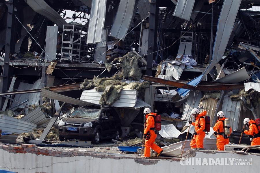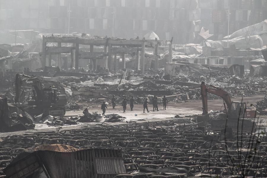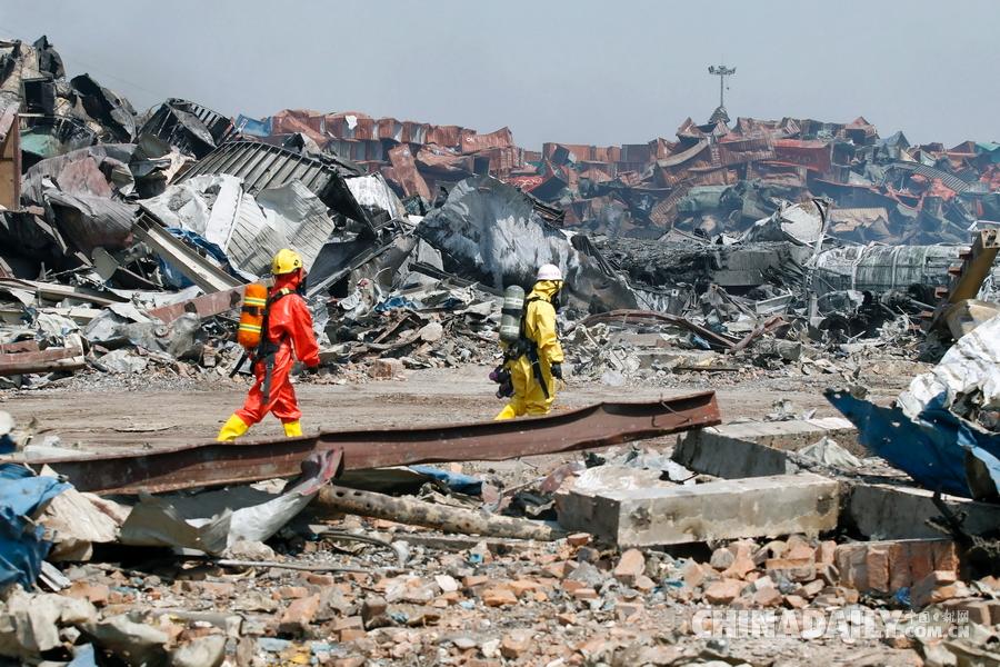 Rescuers work at the explosion site in north China's Tianjin Municipality, Aug. 16, 2015. A total of 112 bodies have been found, and 95 people remained missing, including 85 firefighters, after massive warehouse explosions rocked north China's Tianjin city Wednesday night, officials said at a press conference Sunday morning. (Photo: Xinhua/Zheng Huansong)